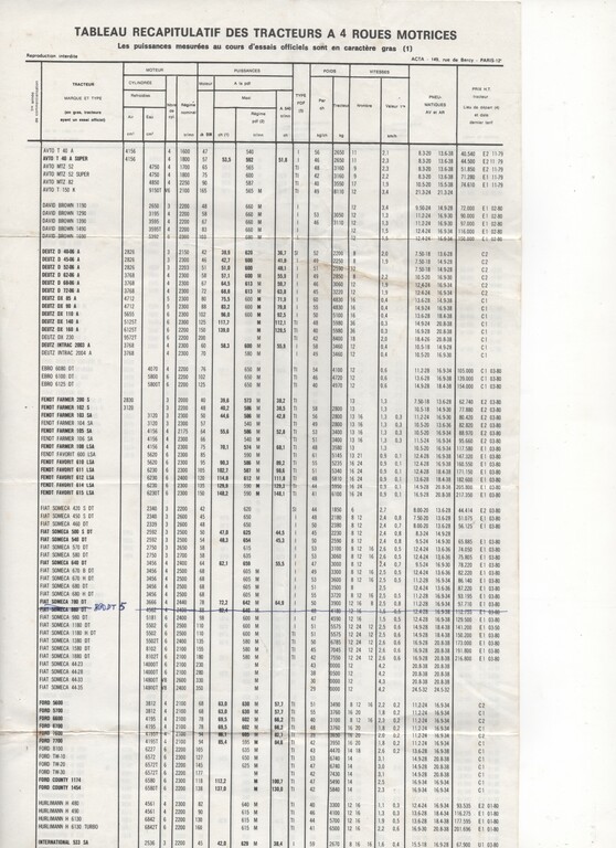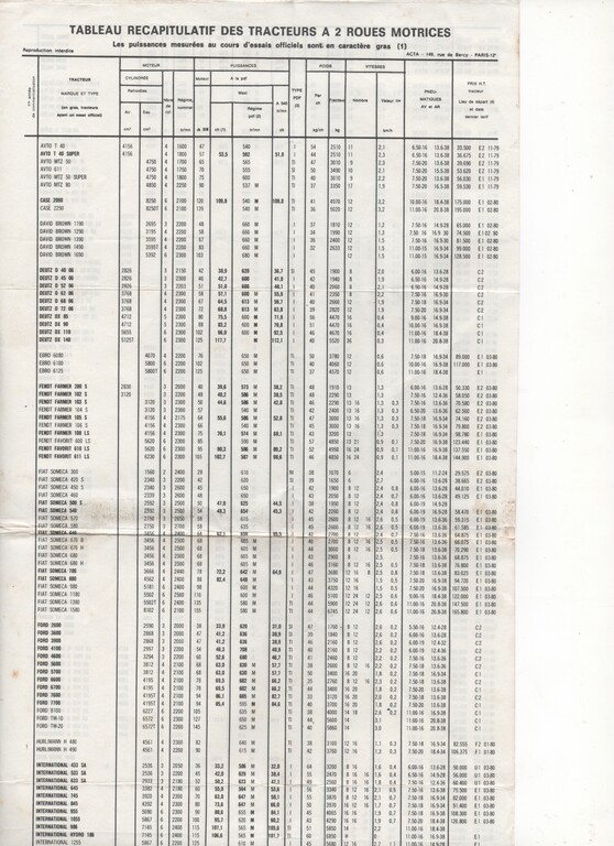 Ci- dessous, la suite des prix des 2 roues motrices "Tractoguide ACTA -Mars 1980".