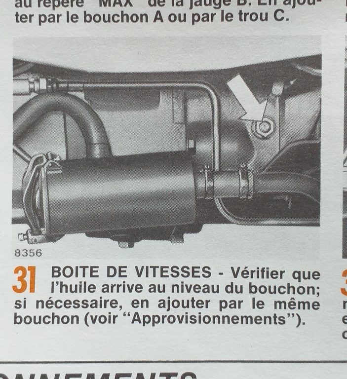 Et si tu veux controler ton niveau de boîte, lhuile doit arriver au niveau du bouchon, bon courage a toi