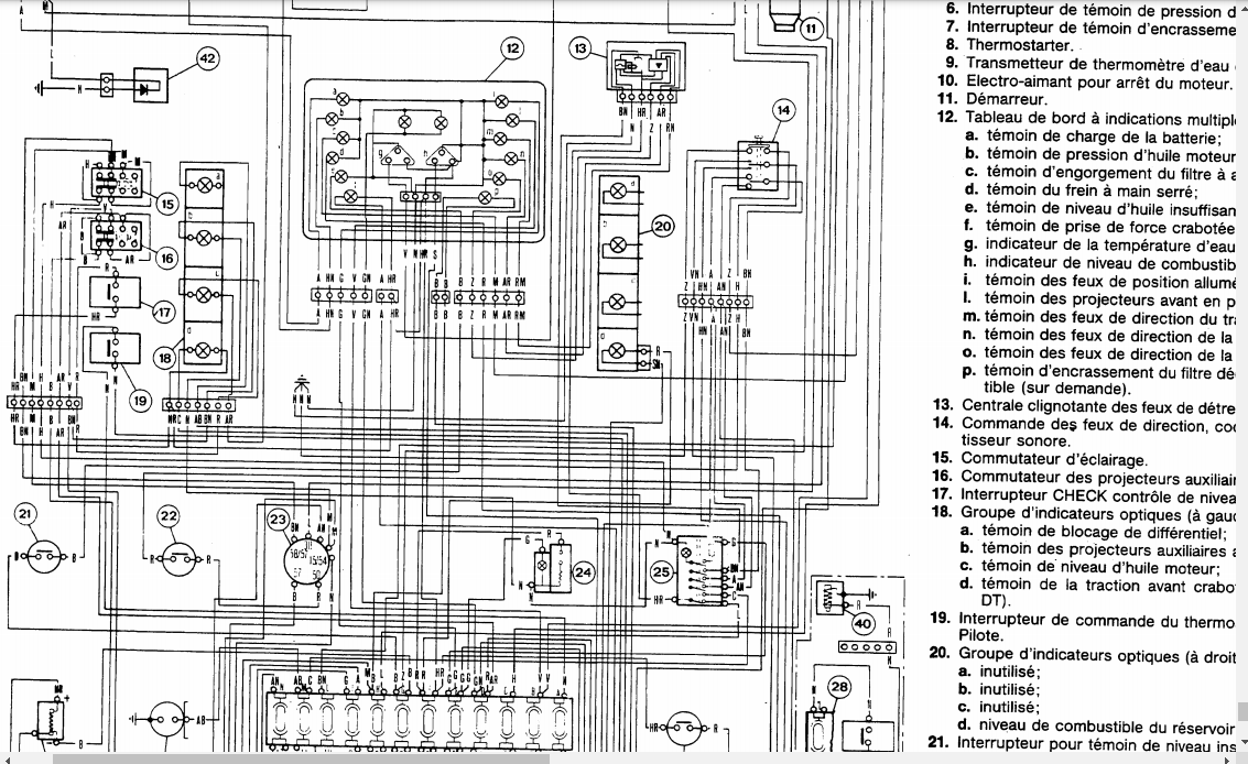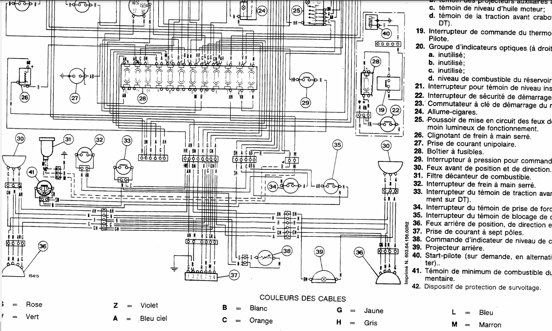 J'ai les schémas électriques enfin le pseudo plan mais il n'est d'une pas clair et ensuite ne me permet pas de savoir qu'elles sont les broches à brancher pour les 2 interrupteurs (veilleuses / feux de position et feux de travail).