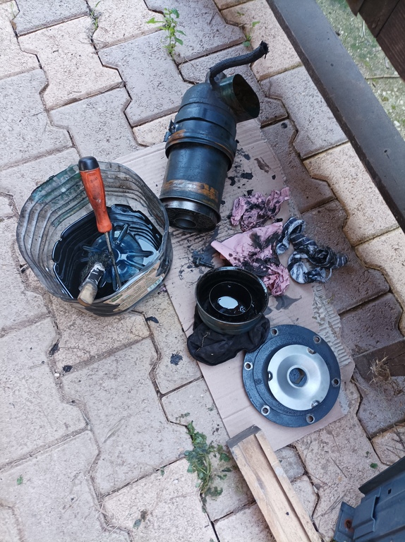 J'ai remarqué que la crépine était légèrement baissé sur le tuyau d'aspiration, on a pas vérifier l'embrayage, il fonctionne nickel, même si la cale est à fond (c'est peut-être normal) .