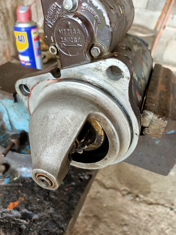 Je tape avec un manche de marteau sur le démarreur (je n'y crois pas trop, mais on peut toujours essayer). deux ou trois essais et toujours rien.