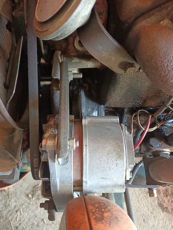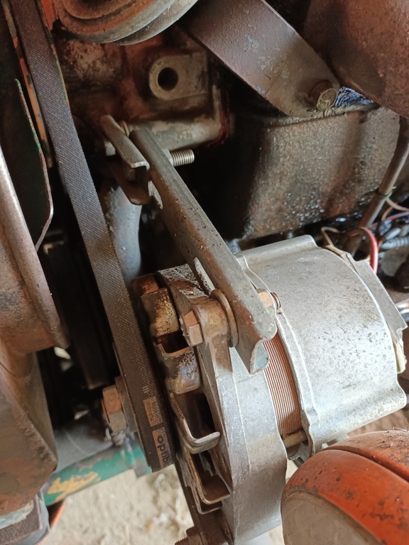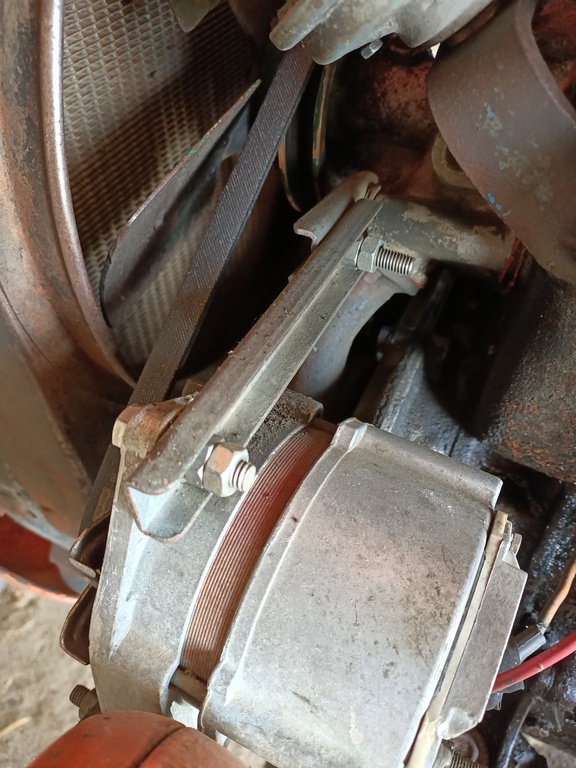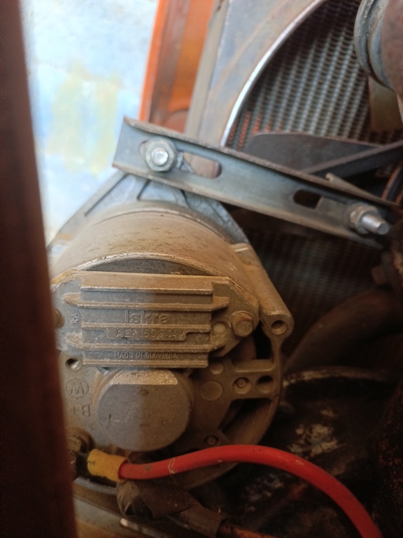 pour le montage de 2010 de l'alternateur ISKRA 14v. /33 Amp. sur le Som 25 D. Voici les photos que je t'ai envoyé .Je les joins ici car çà peut servir à d'autres membres. J'ai relevé l'appui du capot sur la console du tableau de bord de 7 cm env..