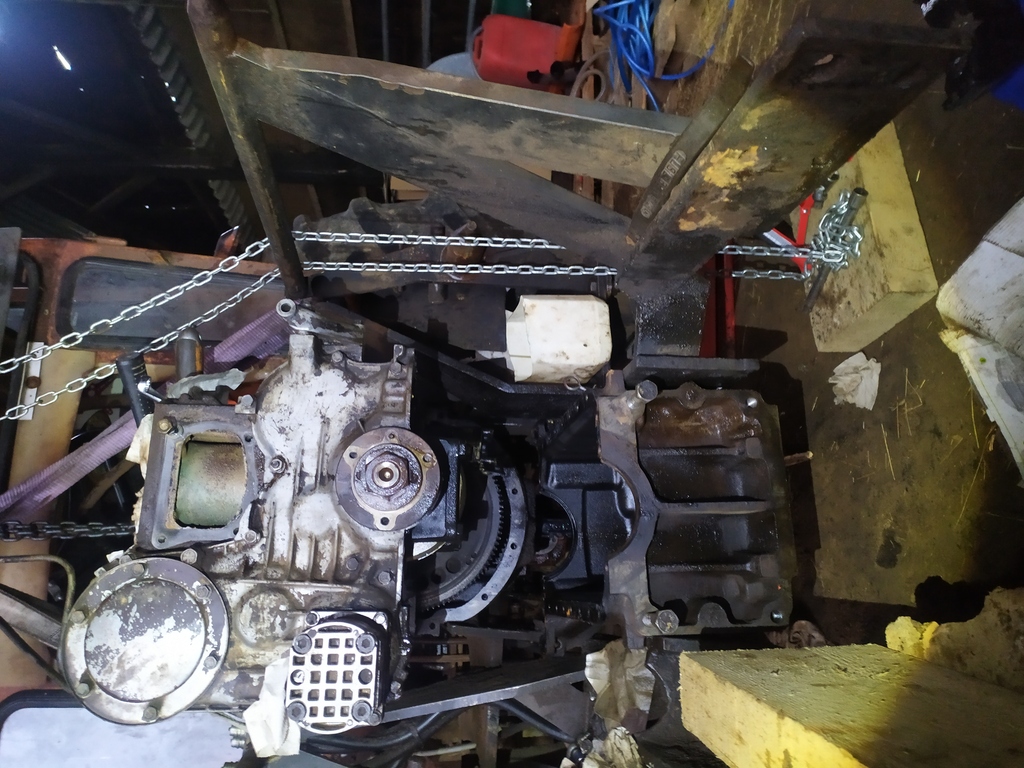 Aujourd'hui j'ai déposé le bâti de fourche car je ne pouvais pas sortir le carter d'huile les deux ergots du fond ne passaient pas.