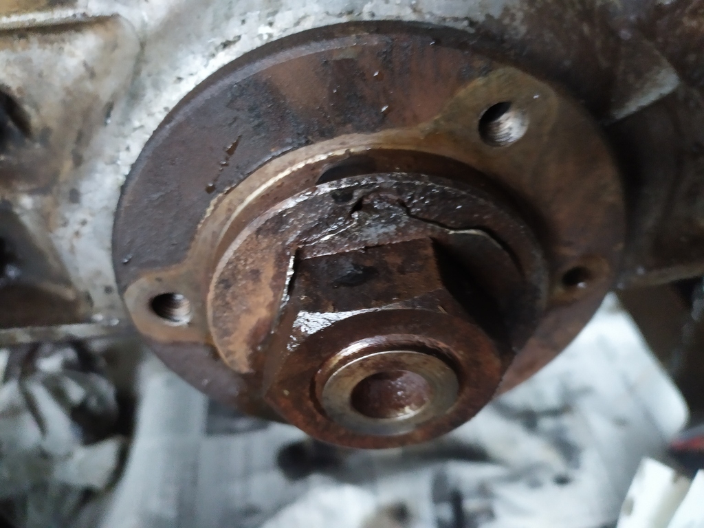 Les pistons sont sortis mais le moyeu derrière la poulie de vilebrequin était difficile à sortir .