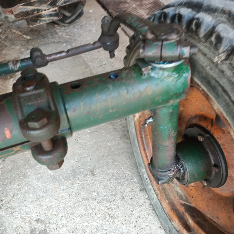 Avant de mettre les demi- essieux dans la partie centrale(essieu fixe), il a fallu recharger en soudure et meuler au Dremel les bas des porte- fusées car il sont ovalisés; Mise en place des coussinets en bronze 559545 et des rondelles de butée( celles en bronze 26 A (5144754) sous celles en acier 26bis(567499) sans les pions sur les fusées du 271. Ces fusées ont été conservées car celles du 25 sont trop usées. Sans les pions d'arrêt 26 ter non fournis ( pouvant être remplacé par des goupilles mécanimbus de 5)car il s'avère qu'il y a trop d'usure pour la prise sur le châssis . Ensuite un bon graissage de l'ensemble.