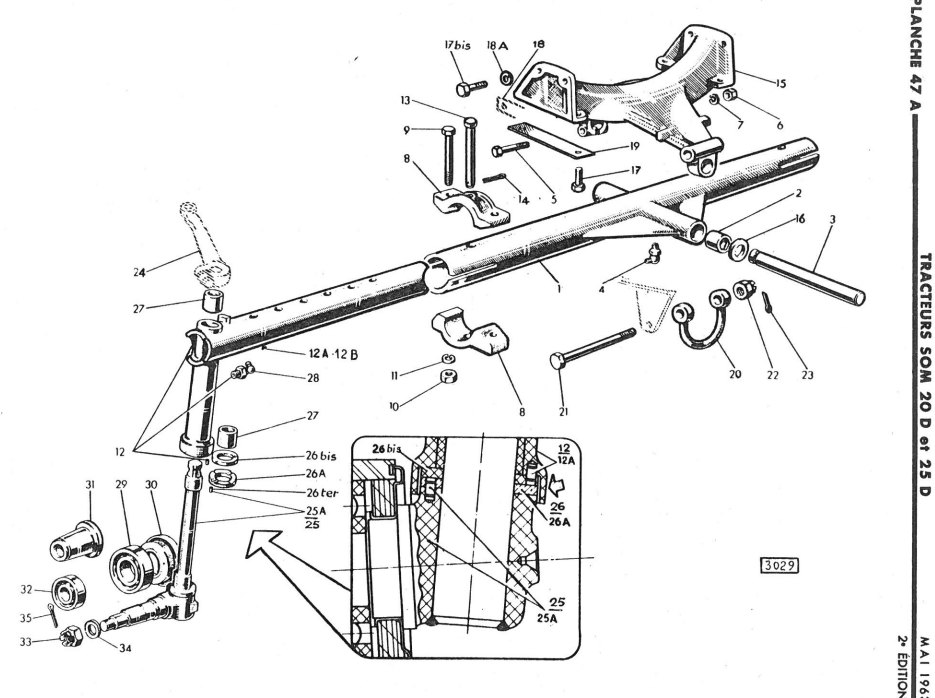 J'ai dû récupérer le train avant du 25 sur l'épave du 271 , vu que les coussinets ne s'y montent pas .La pièce d'origine est introuvable car le 271 a été très peu produit et il n'y a pas de catalogue des pièces.