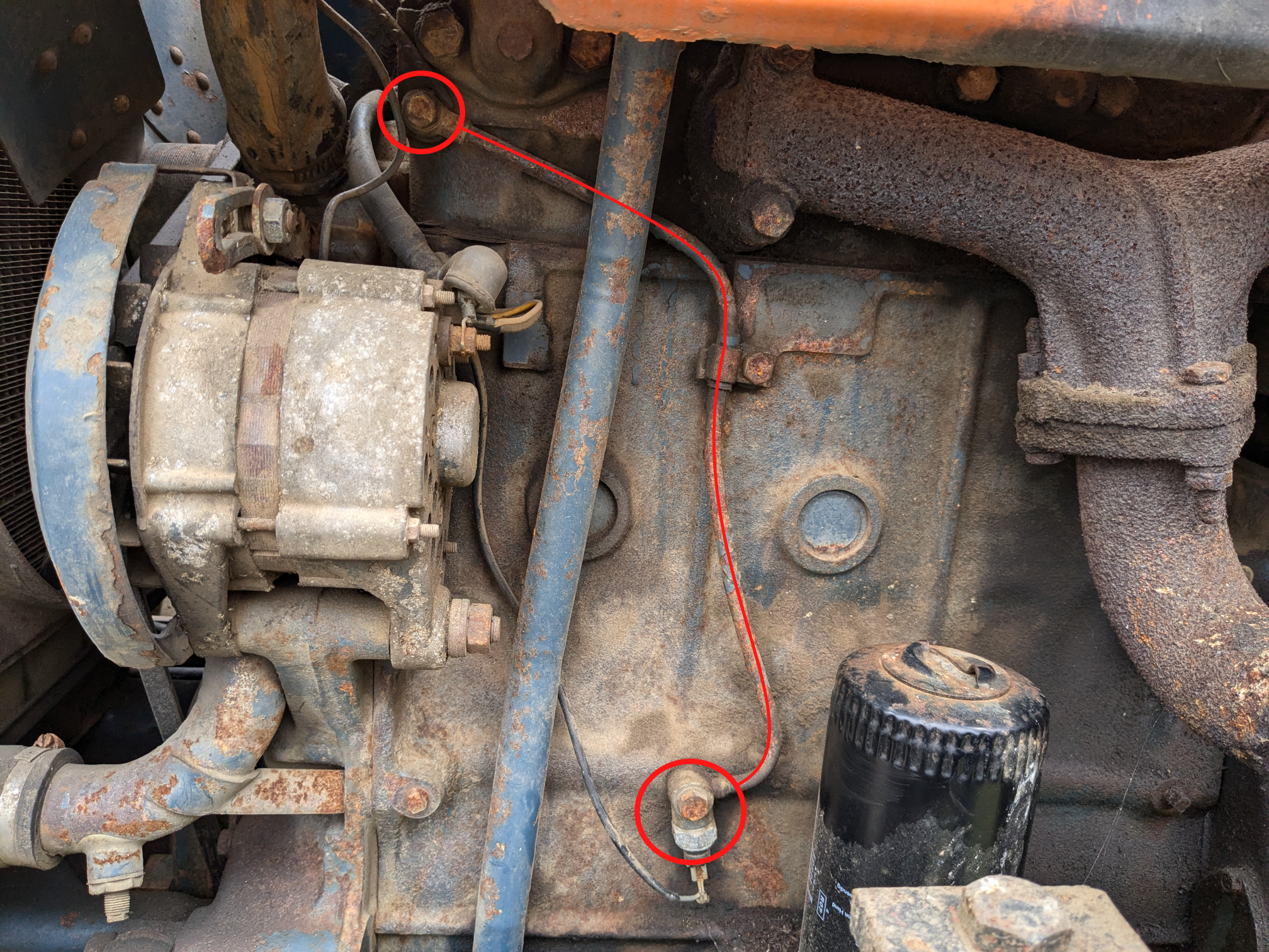 Ce sont les bougies de préchauffage ? Je trouve la localisation étrange. Je sais qu'il existe des bougies à flamme, qui préchauffent l'admission d'air et non le gasoil, mais je ne pensais pas que c'était le cas sur ce tracteur. Un avis ?