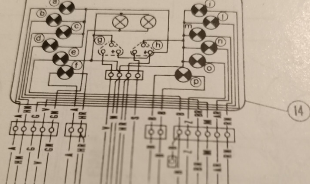 Aidez-vous des plans que je vous ai mis ( sur l'ordi tu peux faire des gros plans pour bien suivre les fils , plus facile que sur le smartphone). Veiller aussi à des masses correctes partout et le bon fonctionnement de l'alternateur, des voyants, des fusibles.... de la logique et de la patience.