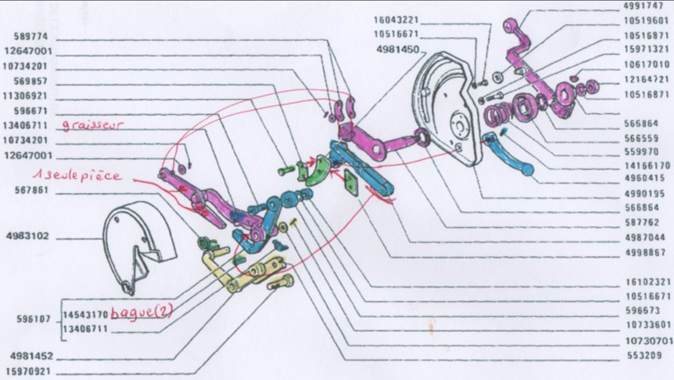 SURTOUT, la roulette la plus proche, c'est celle du balancier. Ce dit balancier , à l'intérieur doit être vers l'avant de la pièce 66.Vérifier si çà correspond à ma photo.