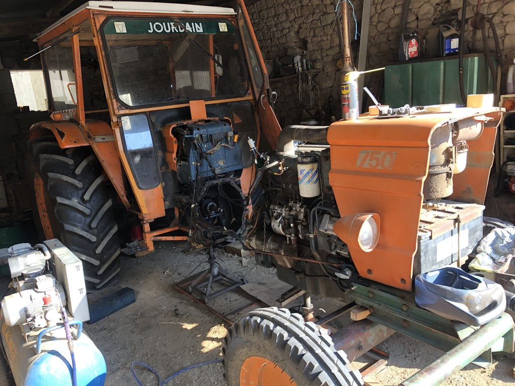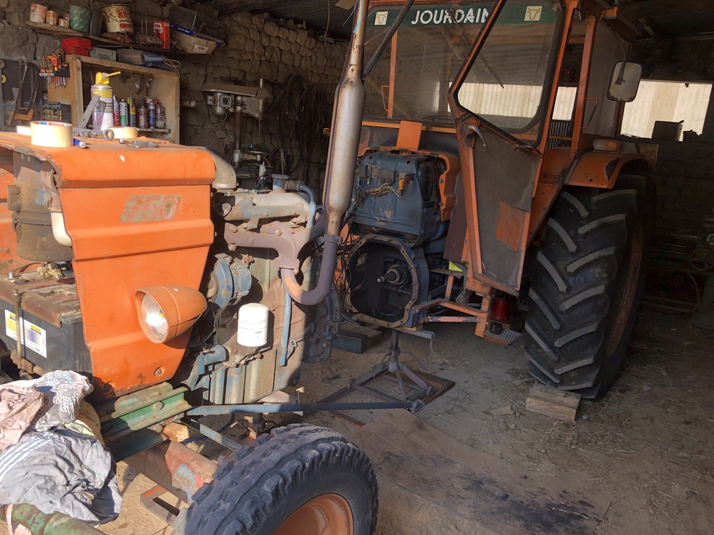 . Cette année j’aurais coupé les deux tracteurs en deux, au printemps c’était le 82 94 pour les synchro d’inverseur et maintenant place au 750. Je vais donc terminé de ramasser les regains avec le 82 94 et remettre mon petit Renault 86 au travail pour l’andainage