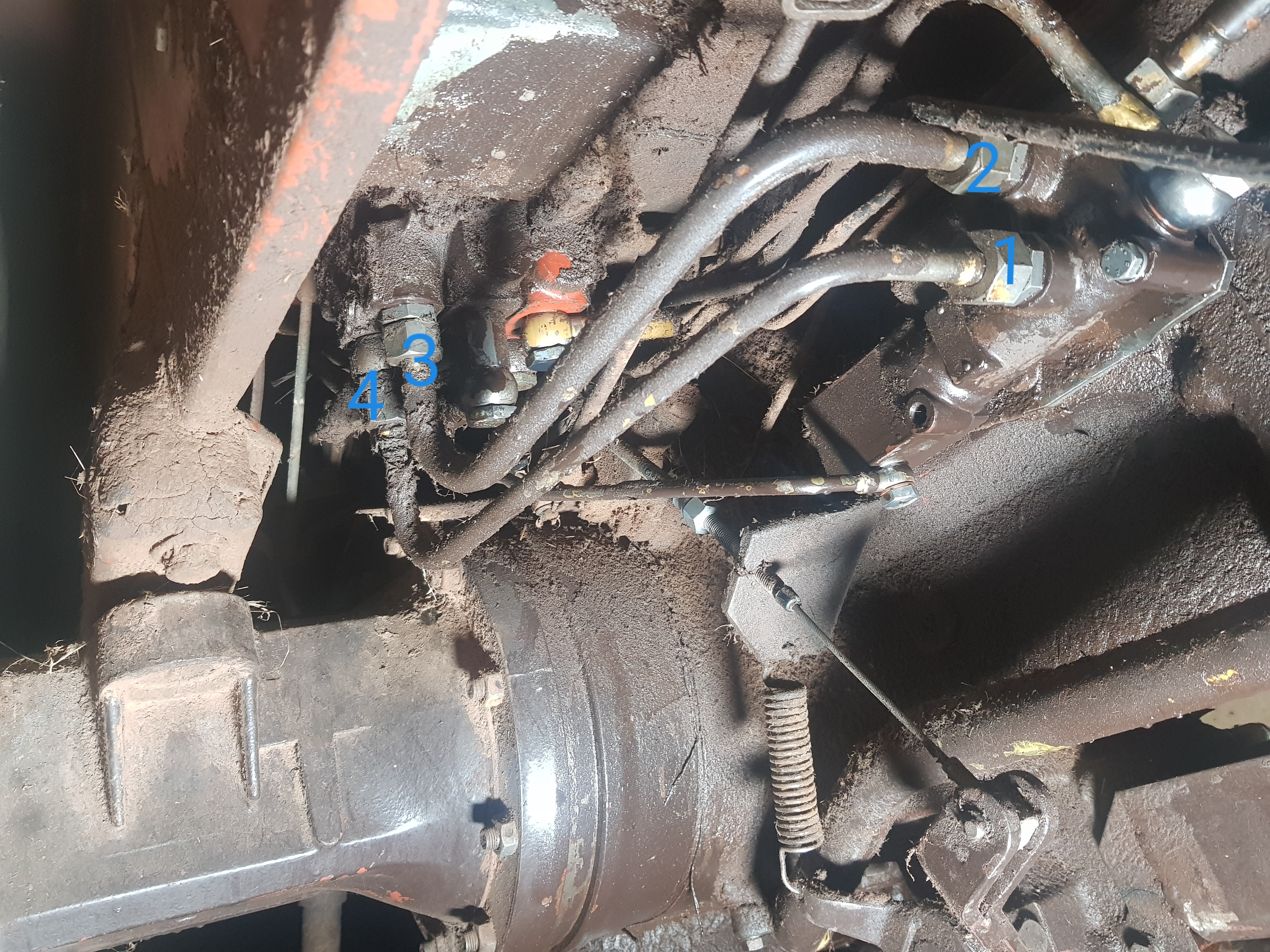 3-> j'y mets le flexible qui sort la pression a suivre du distributeur du chargeur (sortie R)