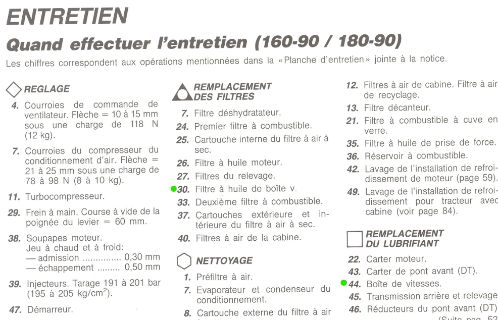 Voici les conseils pour l'entretien ( sur le dessin ils ont remplacé 30 par 29, on dirait):