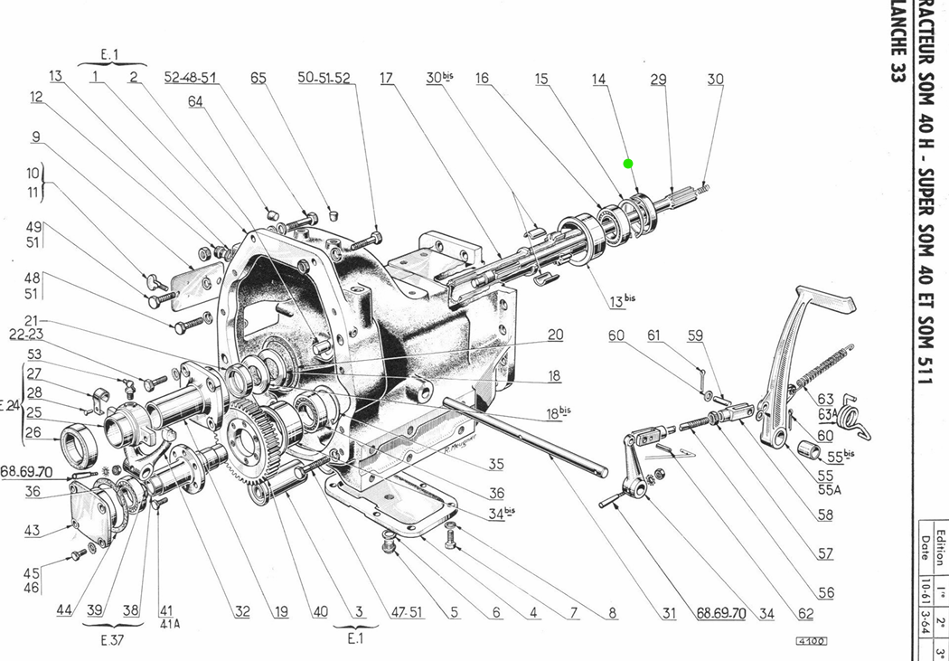 A gauche tu vois le joint 35 (44008713) (50x65x10 (50:diamètre intérieur))que tu as changé à coté du circlips 27 (44850037), joints papier 32 et 30