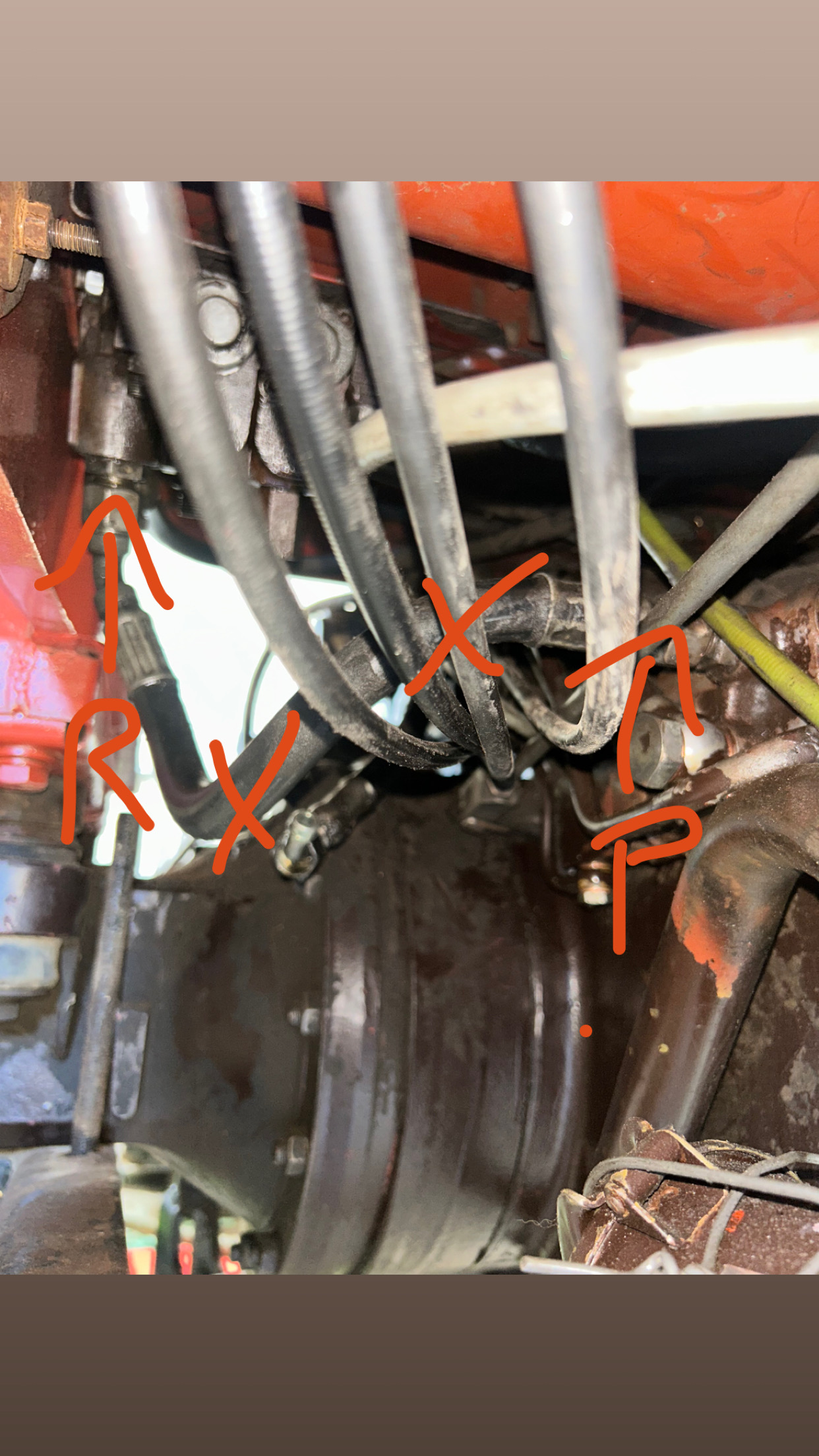 monté un flexible de ( R ) du distributeur du chargeur qui va vers l'entrée des distributeur axillaire ( c'est le tuyau de réalimentation en huile pour le reste du tracteur distributeur auxiliaire et relevage )