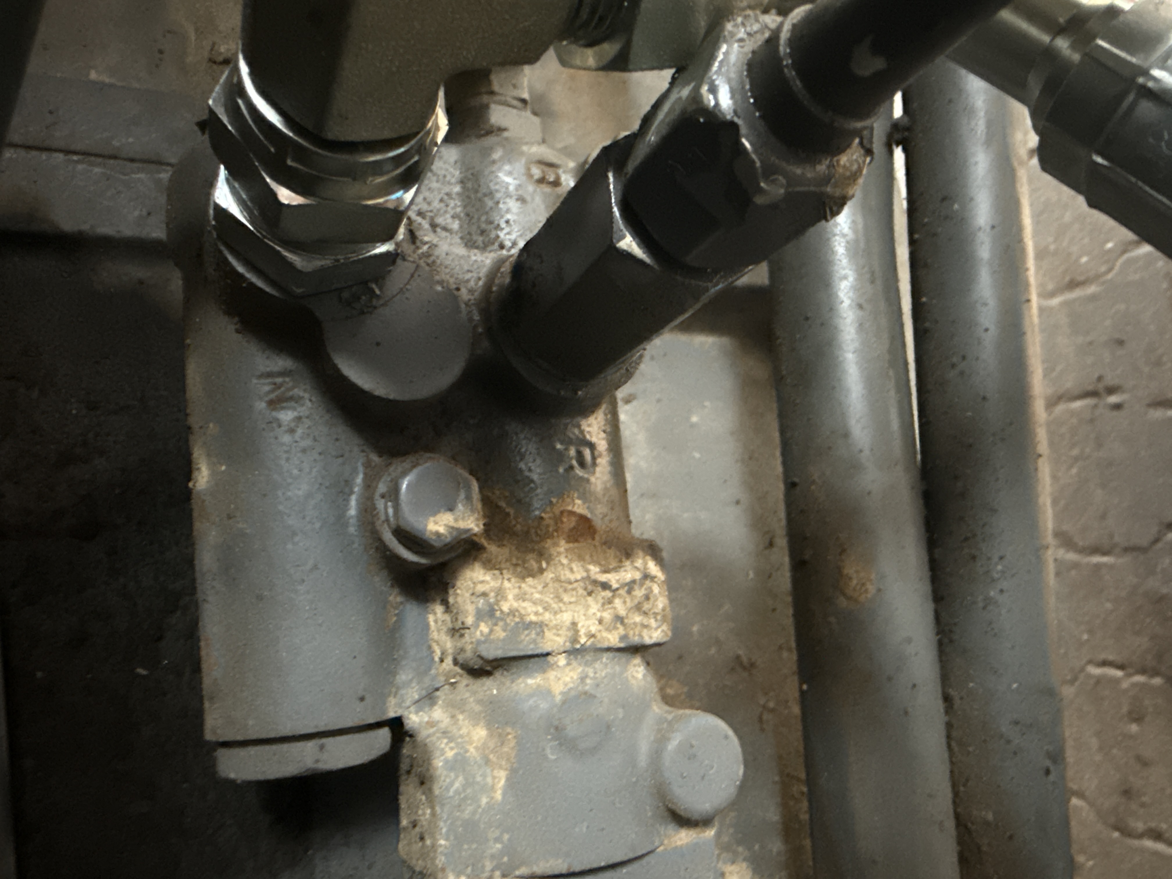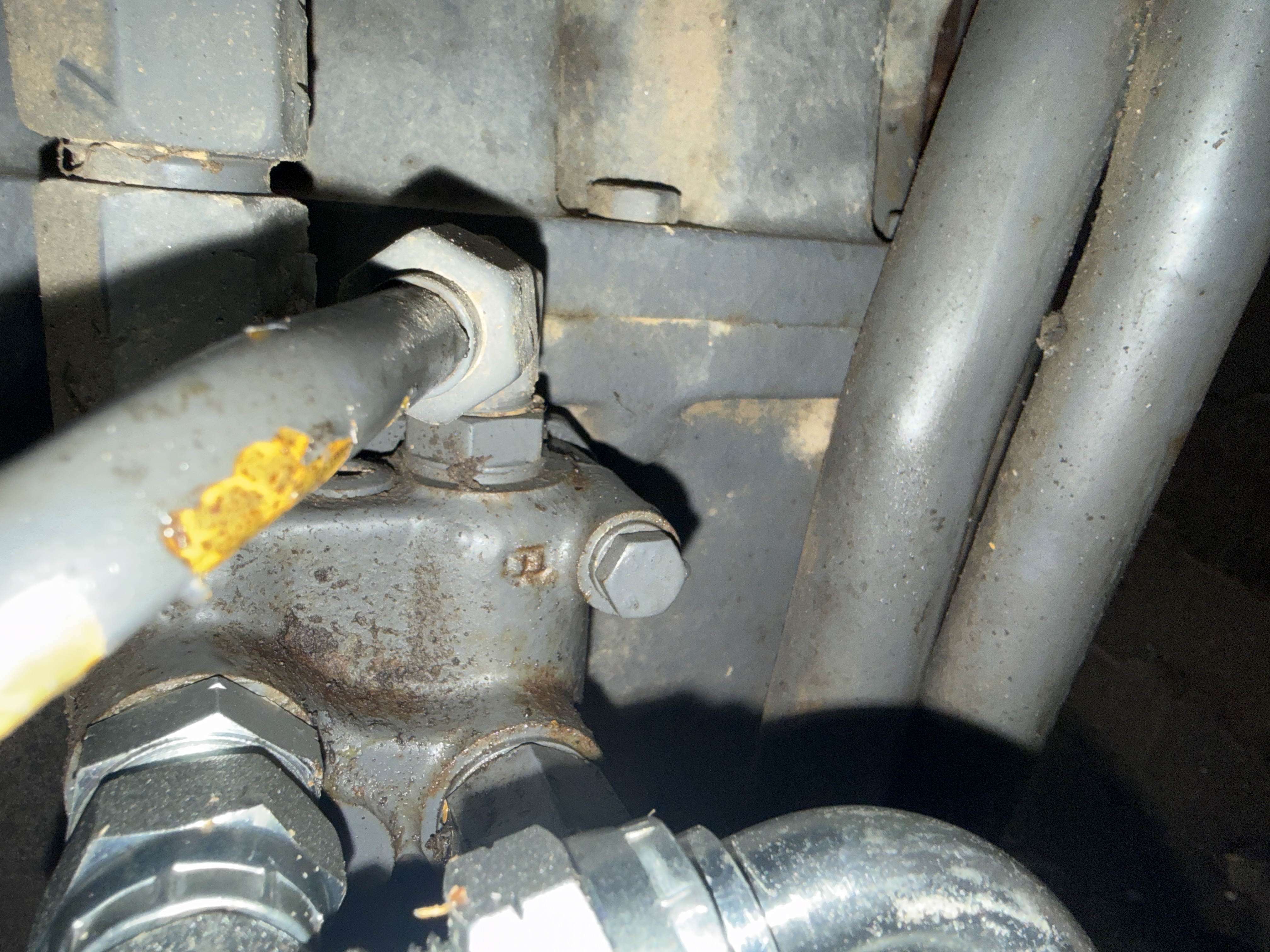 Le nouveau distributeur est monté, mais il me manque deux pièces pour terminer le branchement hydraulique.