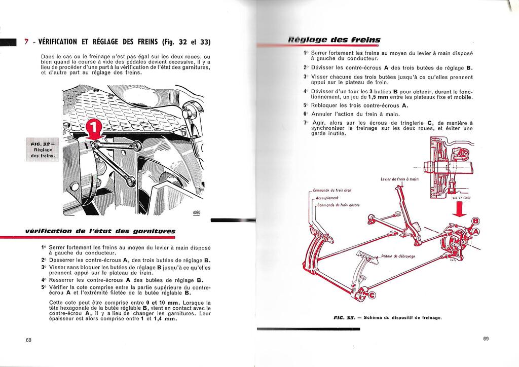 Car j'ai l'impression que cette patte (placé à l'arrière vers les réducteurs)... via une tirette métallique liée au pédale de frein, avance direction conducteur quand on appuie sur les pédales, ce qui actionne les freins.