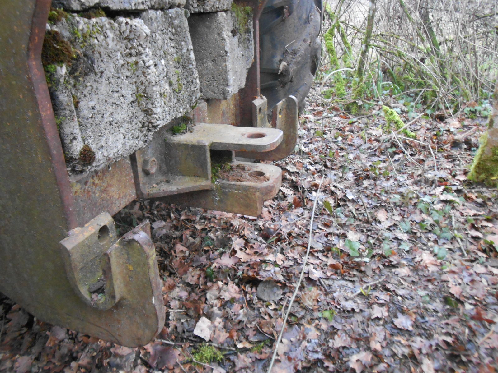 A l'arrière c'est pour un appareil qui se prend par les 4 points du portique et les perçages pour le claveter pour pas que l'outil remonte . Peut-être un treuil pour débarder mais il faut un entrainement.