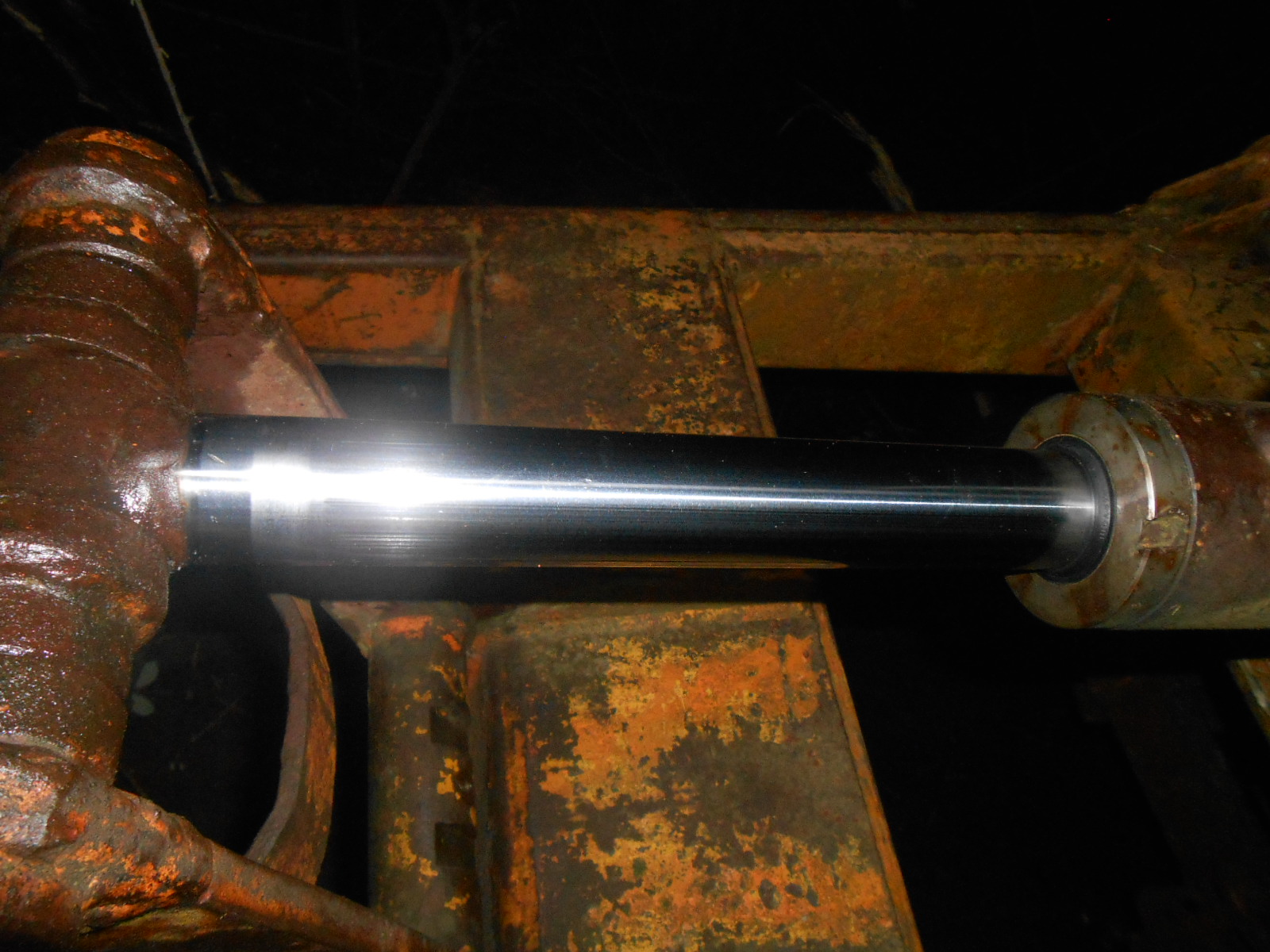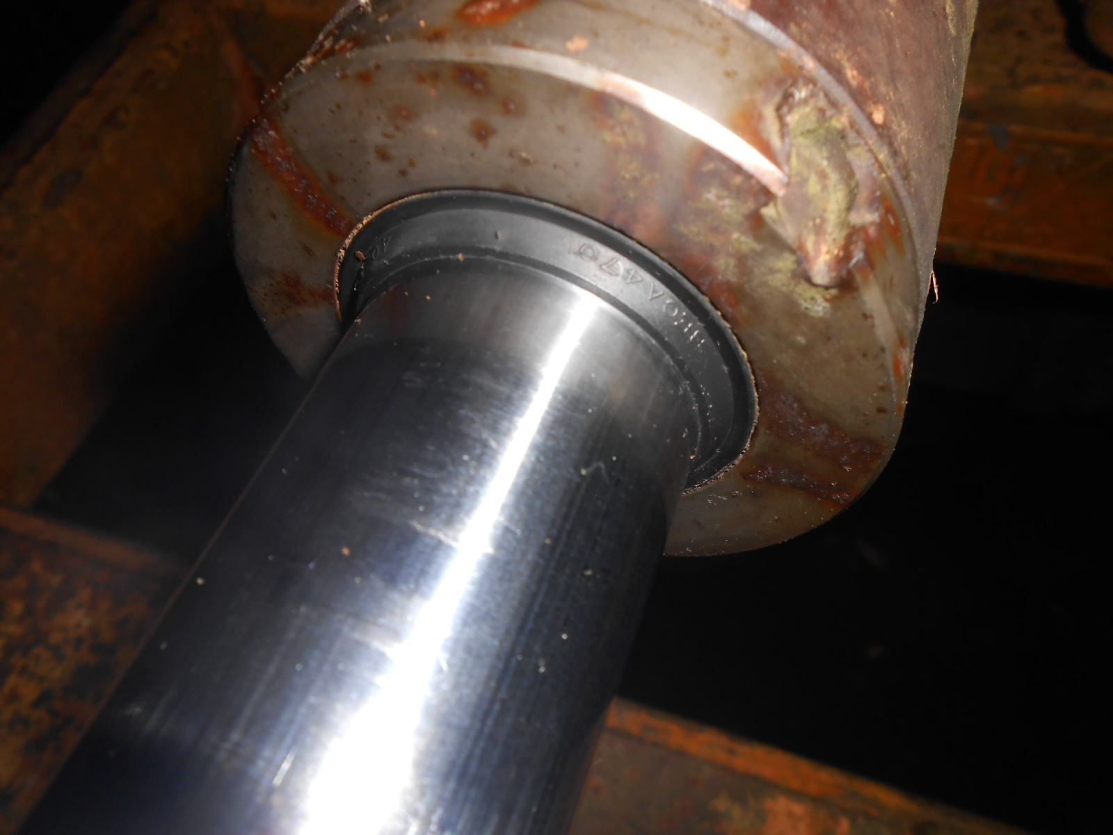 Puis le vérin, qui semble en pas trop mauvais état, juste un "coup" à droite (une sorte d'encoche bizarre abîmée) sur la droite du conteneur de tube de vérin... (je connais pas le nom désolé). Le joint en parfait état, malgré les intempéries et ce que ce tracteur a subi ! Ça doit être de la bonne came ce joint