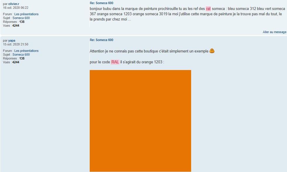 on recherche de la peinture orange someca qui se mettait sur le 800 de l'époque...