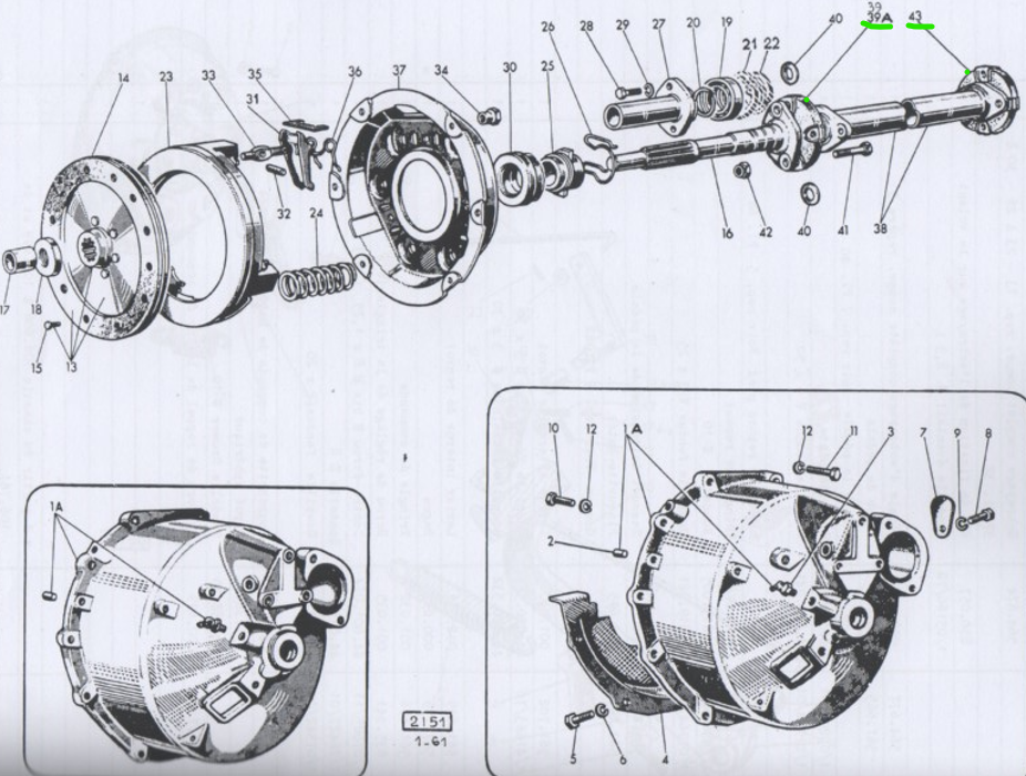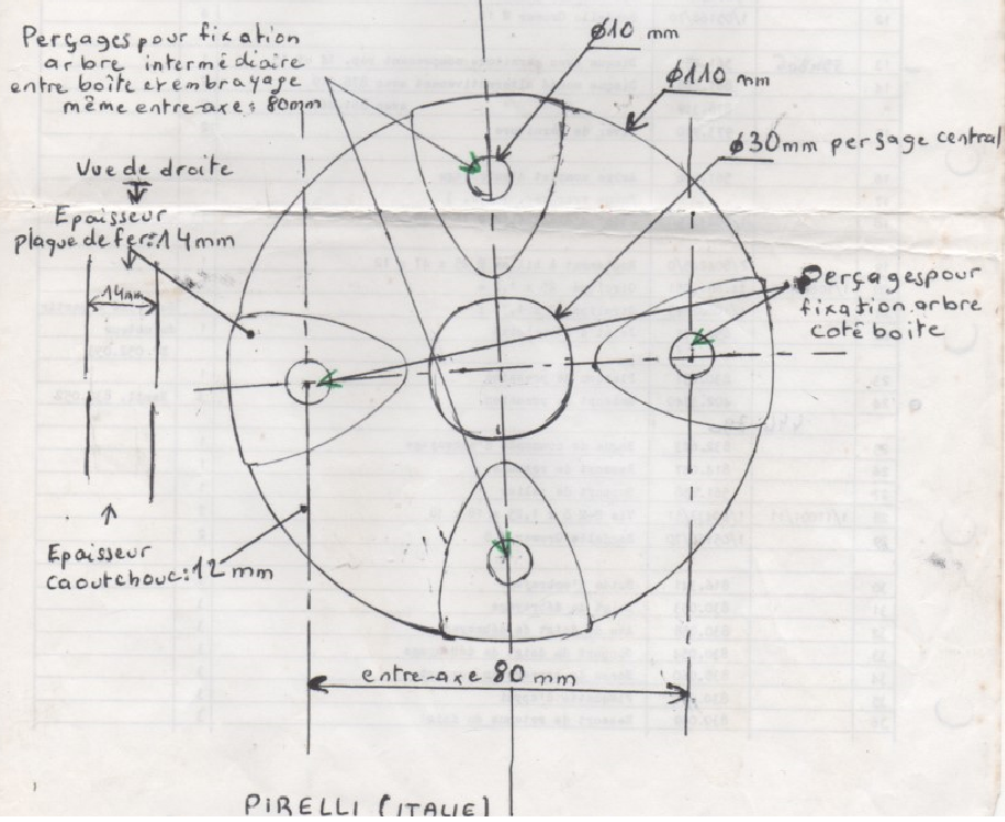Les 2 flectors ( caoutchouc avec armature métallique pour assouplir la transmission des mouvements, aligner les arbres et au pire fait office de "fusible") en bouts de l'arbre qui relie le moteur (embrayage)à la boîte à vitesse: Flector coté embrayage, idem à l'autre extrémité: