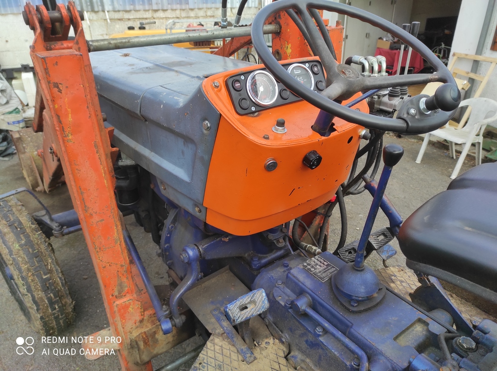 Sinon on a mis le bâti pour la faucheux mais il faut qu'on modifie le pot d'échappement car il frotte et on va souder un plat pour aller sur l'avant du tracteur