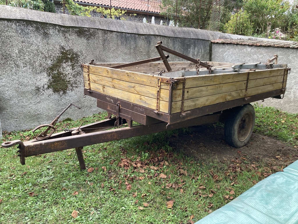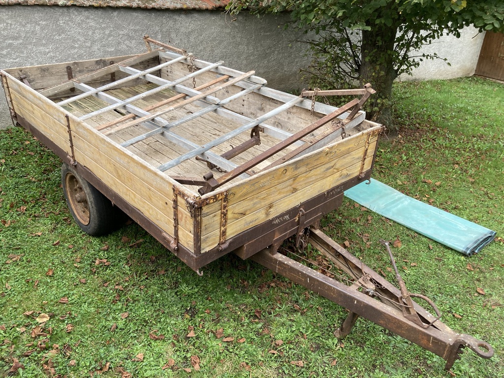 Elle est basculante et les ridelles font 40 de haut. Bien stockée chez l'ancien propriétaire, elle est saine est ne nécessite qu'une réfection du plancher si je ne veux pas perdre trop de sable en route !!