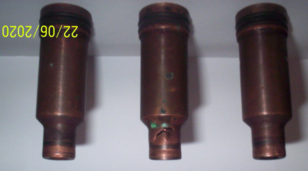 Bonjour, j'ai remanié l'article et mieux détaillé avec photos et références pour voir le lien entre l'ensemble et la douille (au niveau des joints toriques).S'il y a du vert de gris, peut -être que le liquide rongeait le cuivre depuis longtemps. Bizarre car les autres n'ont pas cet aspect. Ou chaleur plus importante , comme c'est le cylindre du milieu ?