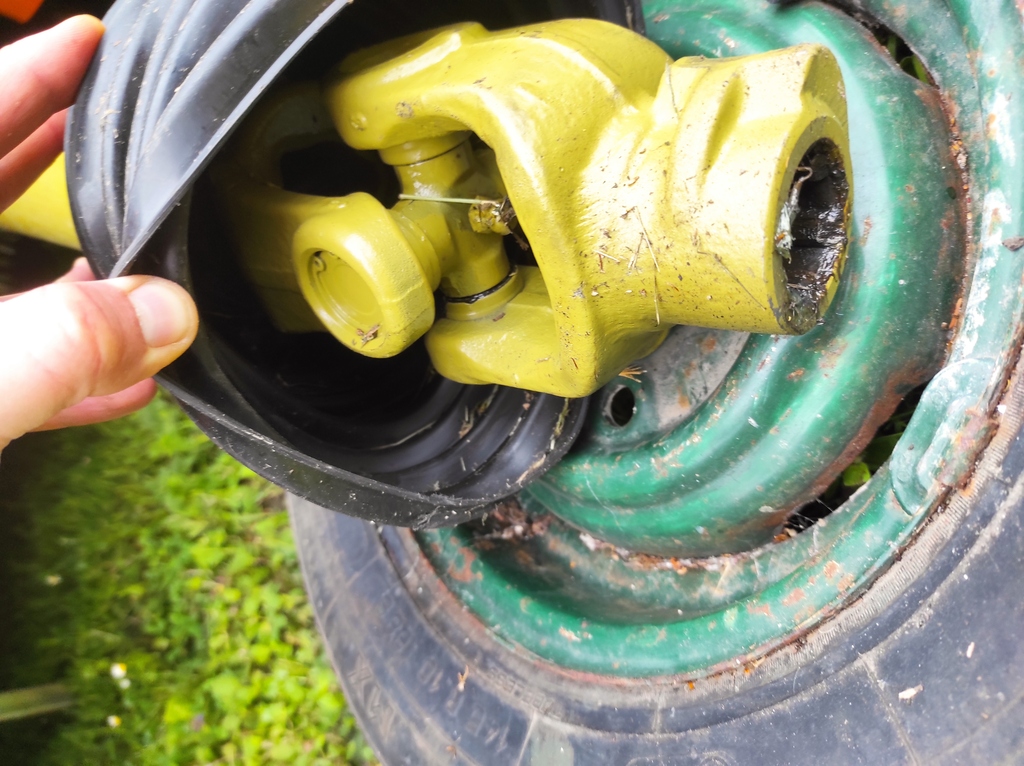 Quand tu emmanches l'arbre de pdf,il aurait pu mettre un manchon avec un boulon de sécurité de 8 x 50 qui casse quand çà force trop. Il suffit de changer l'ensemble croisillon.