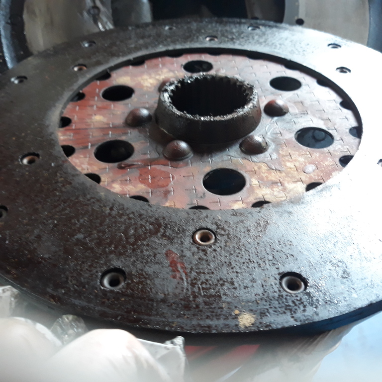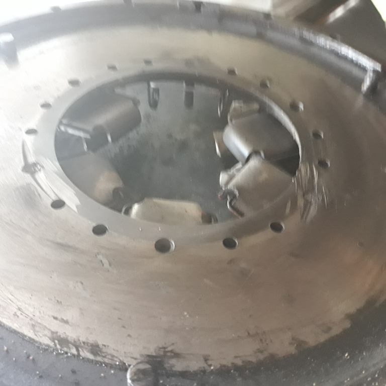 Vue du disque derrière les guides de doigts d embrayage ( avancement) a des coups de meule j imaginepour les soudures faites, mais avec 2g pour meuler comme ça, et ce sont des guides fait maison non ebavurés et tranchants au bout à déjà été refait à l économie cet embrayage