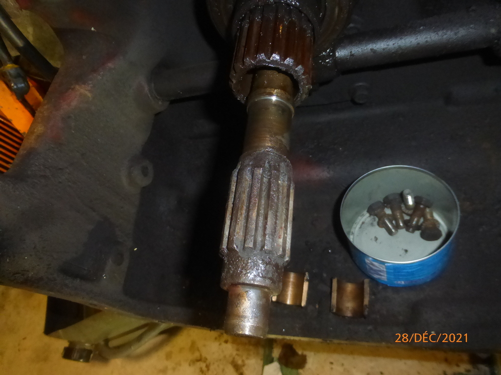 Bonsoir, je suis nouveau sur le site, merci pour votre accueil. Je suis propriétaire depuis peu d'un SOMECA 670 de 1970. Lors du démontage de l'embrayage l'axe d'avancement 12 cannelures est resté grippé dans le roulement pilote et 2 demies bagues en bronze sont tombées. Ma première question est simple : est-ce que le montage d'origine est ainsi, ou il manque un circlips ? Sur une demie bague il y a une encoche. Ma deuxième question : mon axe de renvoi d'angle de direction est à changer, connaîtriez-vous une adresse ? Car plus dispo chez New Holland. Merci et bonne année à tous