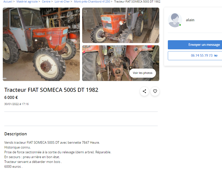 Vu a vendre sur le bon coin someca 500 s DT cabine ,propre a voir