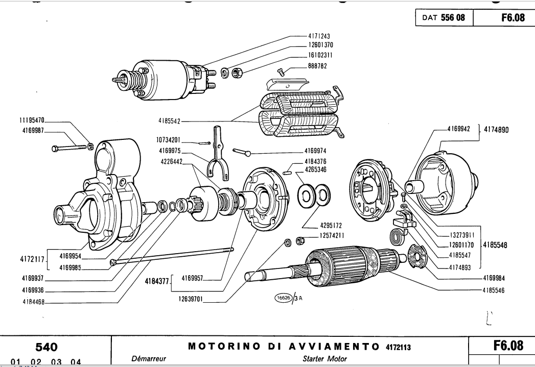 Bonjour, pour le démarreur se sont les 4 charbons 4185547 à changer. Tout démonter, nettoyer, souffler, brosser l'intérieur.. Vérifier l'état du collecteur 4185546, le brosser. Une fois remonté, l'essayer fixé à un étau. Lubrifier légèrement la partie mécanique en mouvement.