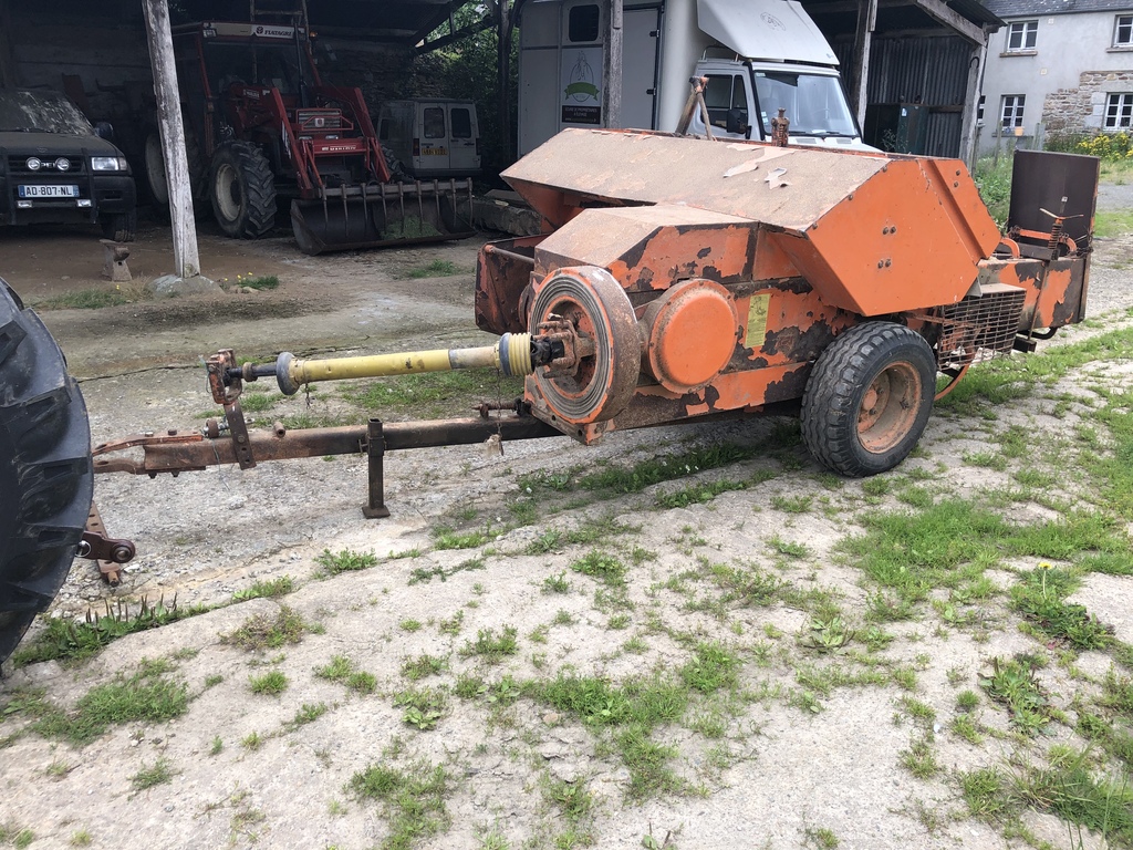 J'ai trouvé une sorte de Round Balleuse Someca a un agriculteur vers chez moi, mais qui est quand même assez ancienne et qui fait des mottes rectangulaires, enfin parallélépipédique zt sans plastique autour...