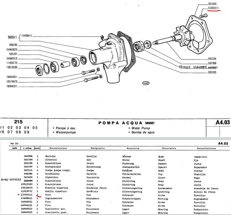 J'ai une fuite à la pompe à eau, elle semble ne jamais avoir été changé, donc d'origine, elle se trouve en commerce, avec la référence 566997, sur le livre des pièce cette référence est barré, les commerces proposent cette référence donc ça doit être la bonne.
