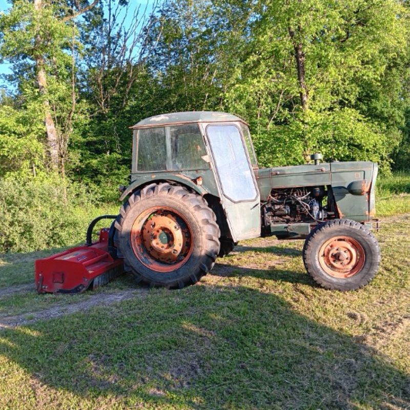 Acheté à un copain, il va remplacer le 624 IH et son gyro Gard 180 lourd et peu maniable, tracteur trop grand pour faucher sous les arbres de mon étang.
