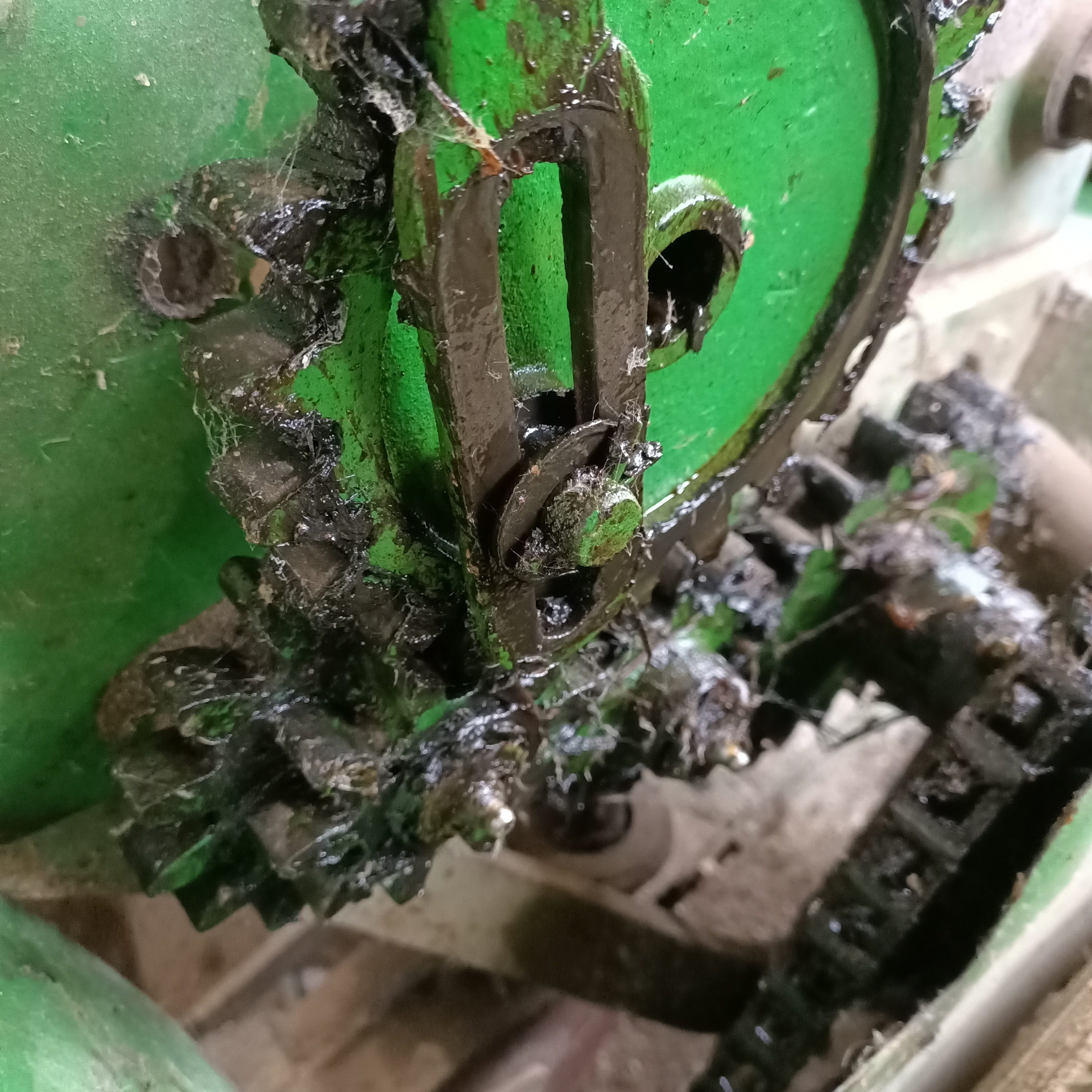 -Pour l'herbe(ray-grass, dactyle...) PV(petite vitesse ) pignon 20 dents menant entraîne le 12 qui entraîne le 16 dents qui entraîne le mené 22 dents.