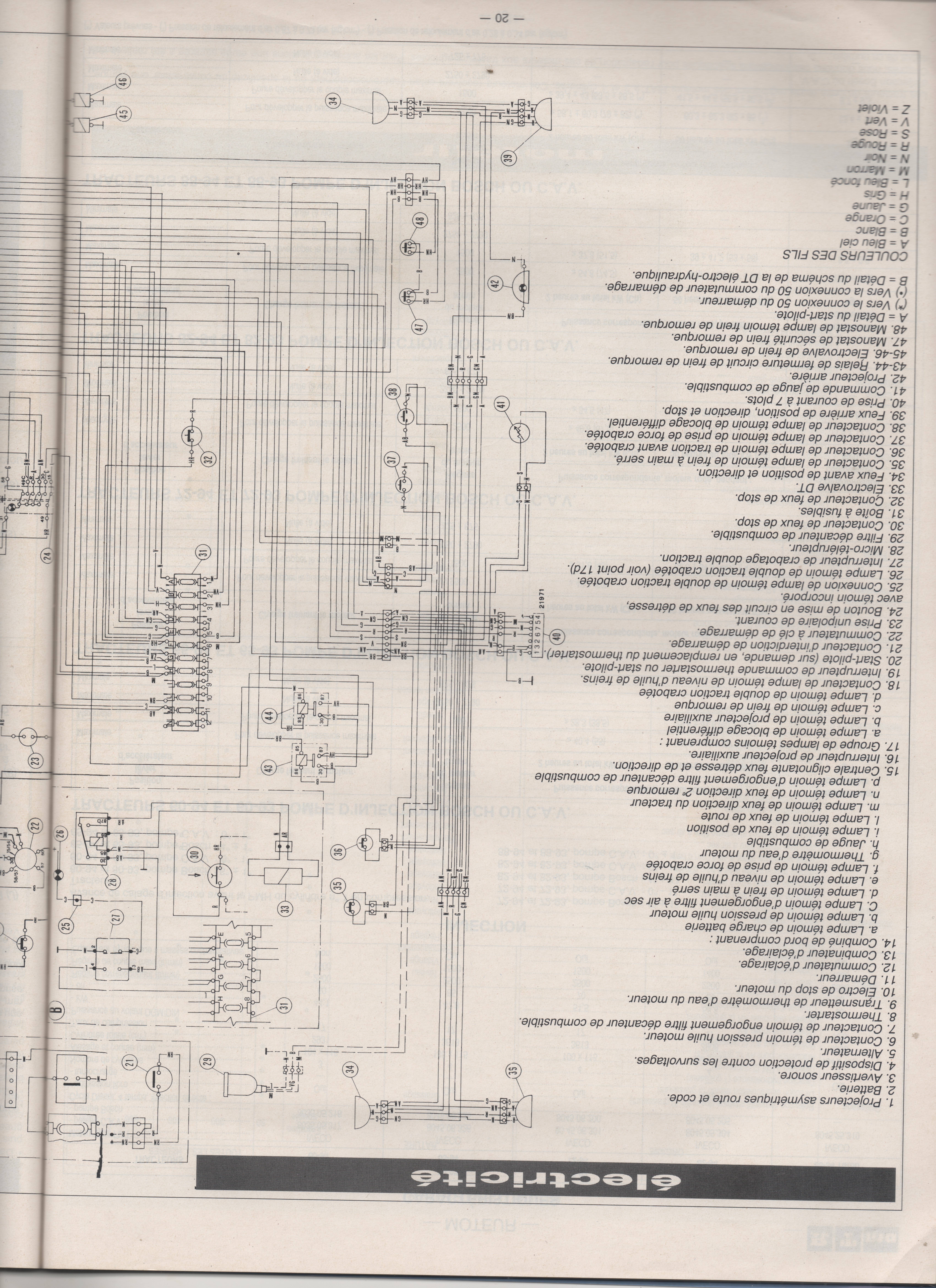 Il y a un fil blanc qui va des 2 relais de fermeture de frein de remorque 43 ,44 ( sous boîte à fusible sur schéma) au fusible 7 et ensuite à une broche ( à coté des feux , en bas -sur schéma) et de là au manostat de sécurité de frein de remorque 47.
