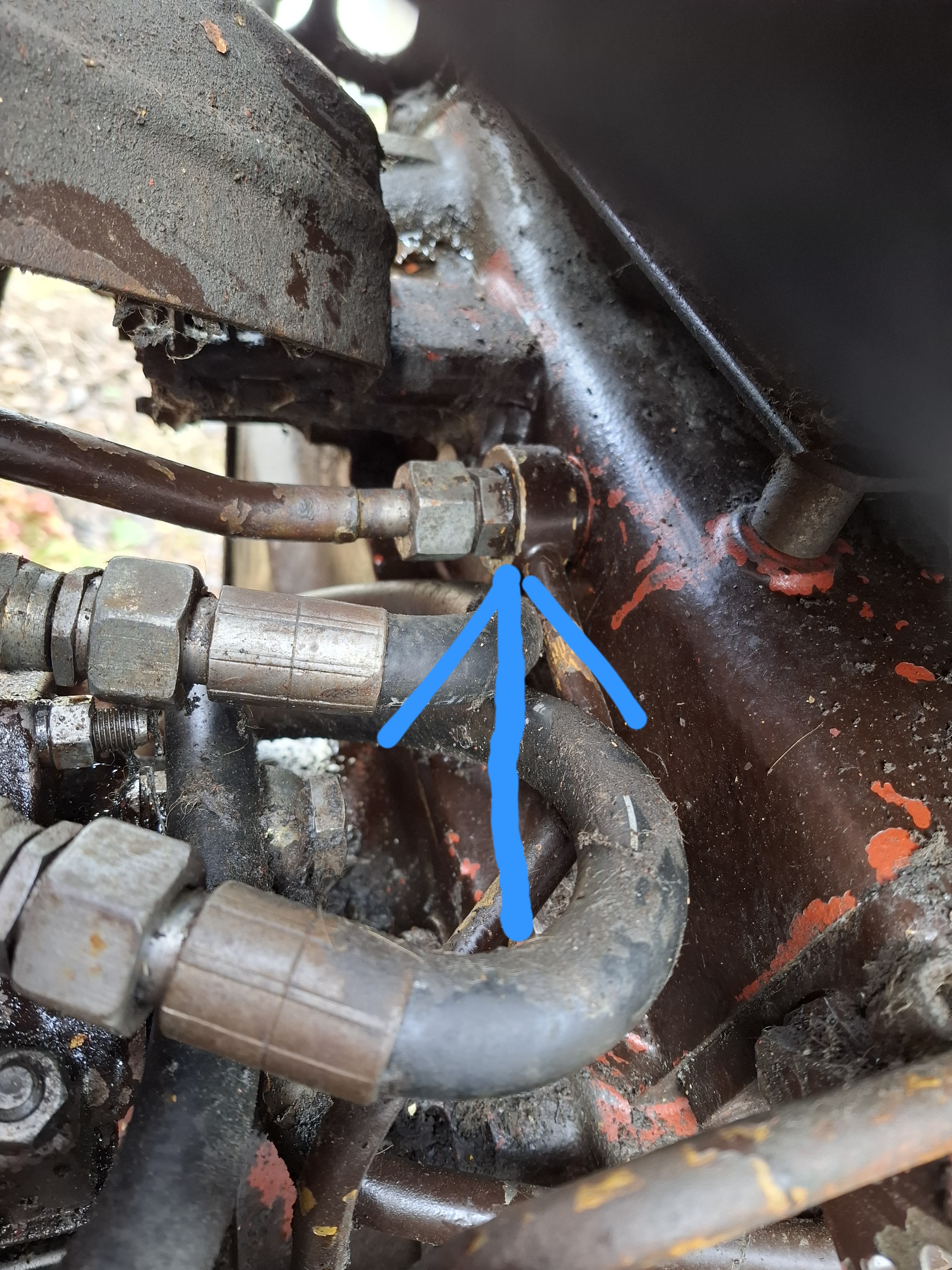 Fuite d huile en sorti de pont pour alimenter le distributeur.