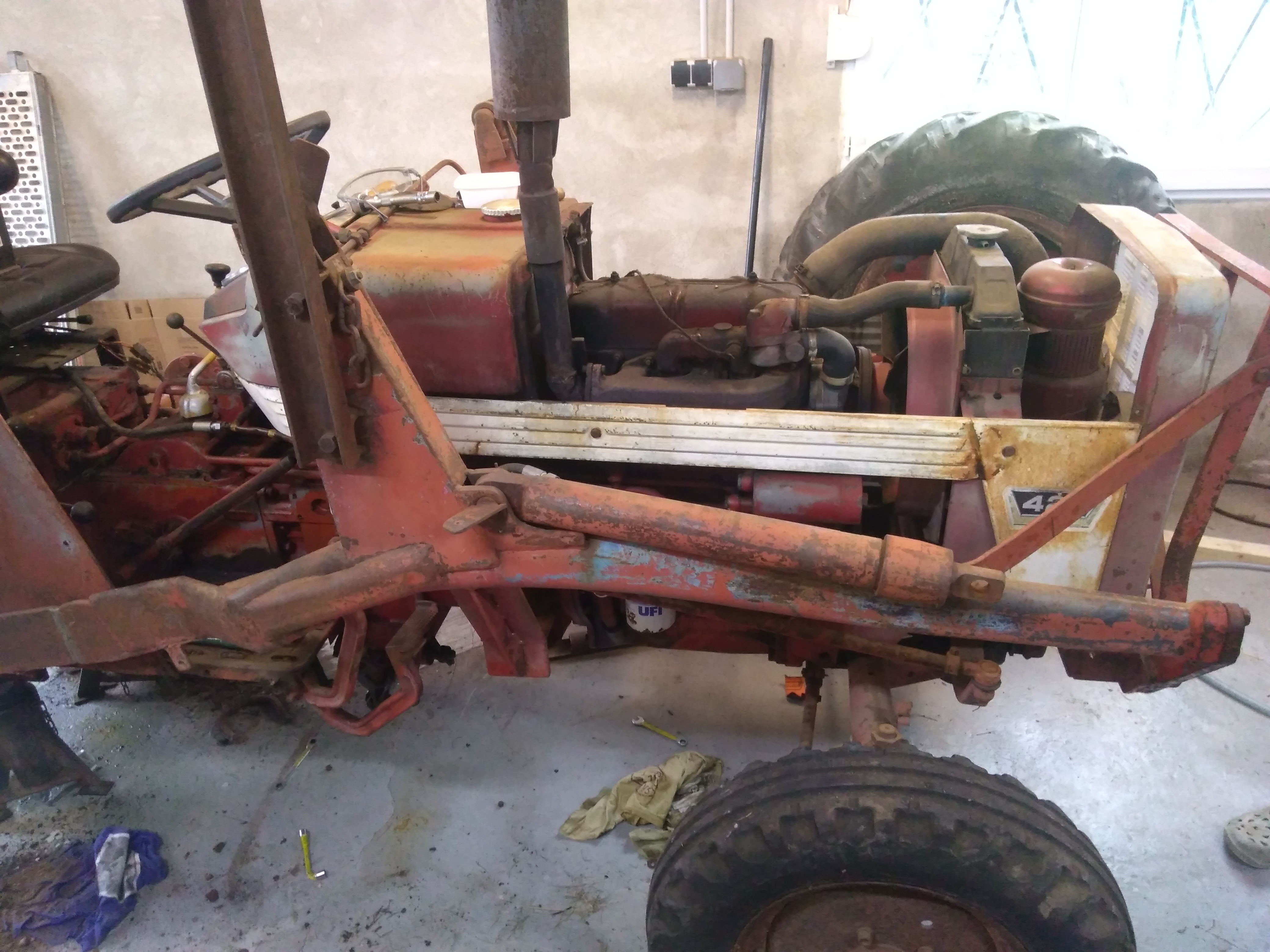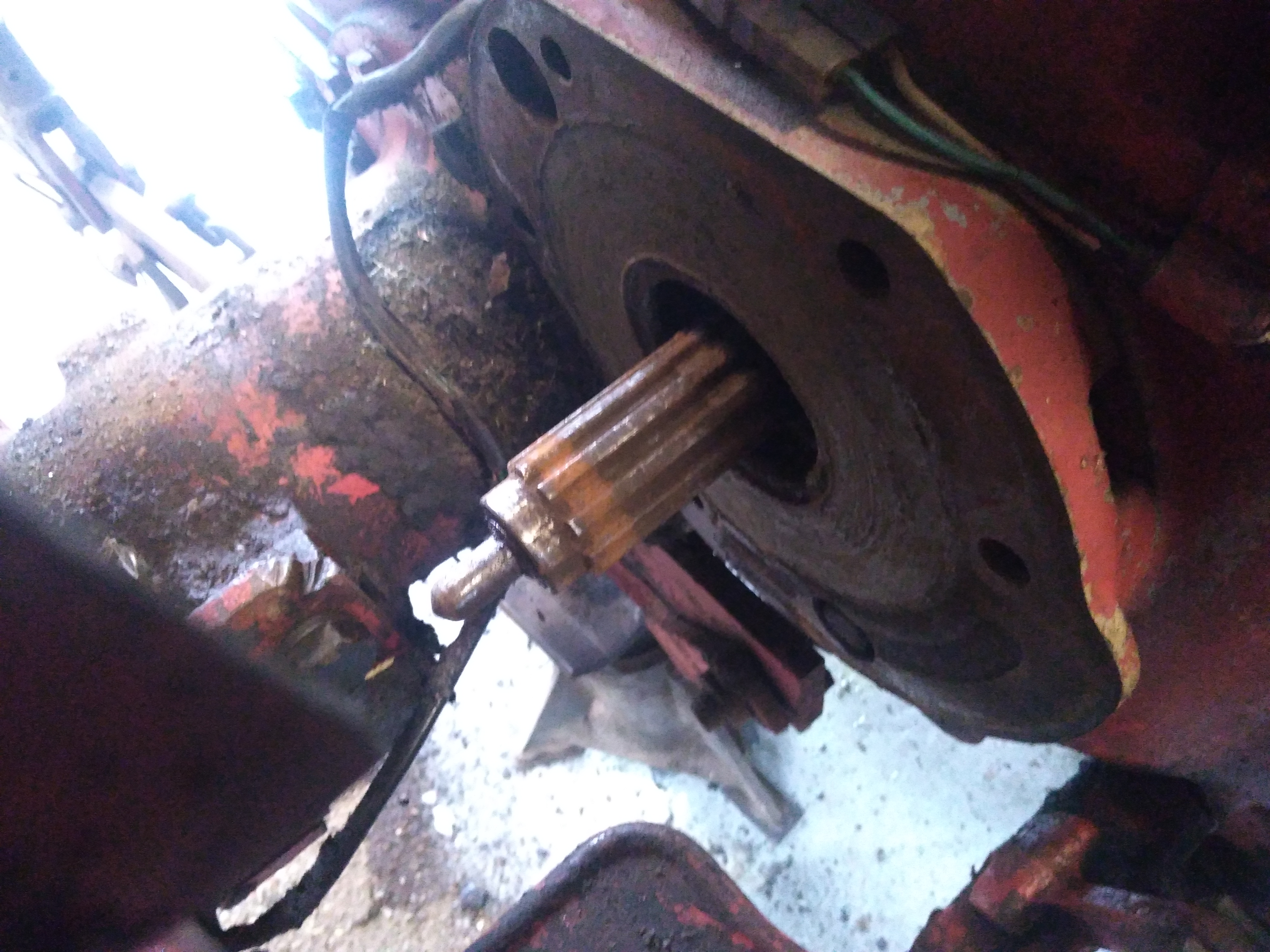 Separation du tracteur pour voir embrayage .... Aie .... Disque HS ( pas grave ) mais surtout rondelle cassée ( Trouvable ???? )