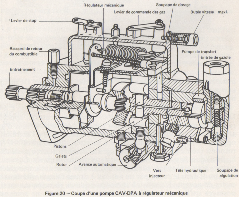 Il est équipé soit d'une pompe Bosch EP/VA, soit d'une pompe CAV/DPA comme montré précédemment.