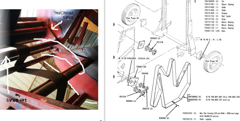 Il me semble que l'autre schéma, celui de la hesston 5530 correspond plus mais dans ce cas mon problème de bottelage ne viendrais pas du passage des courroies... :/ elle seraient déjà monté correctement...si on pouvait trouver le schéma d'origine je serais fixé au moins...