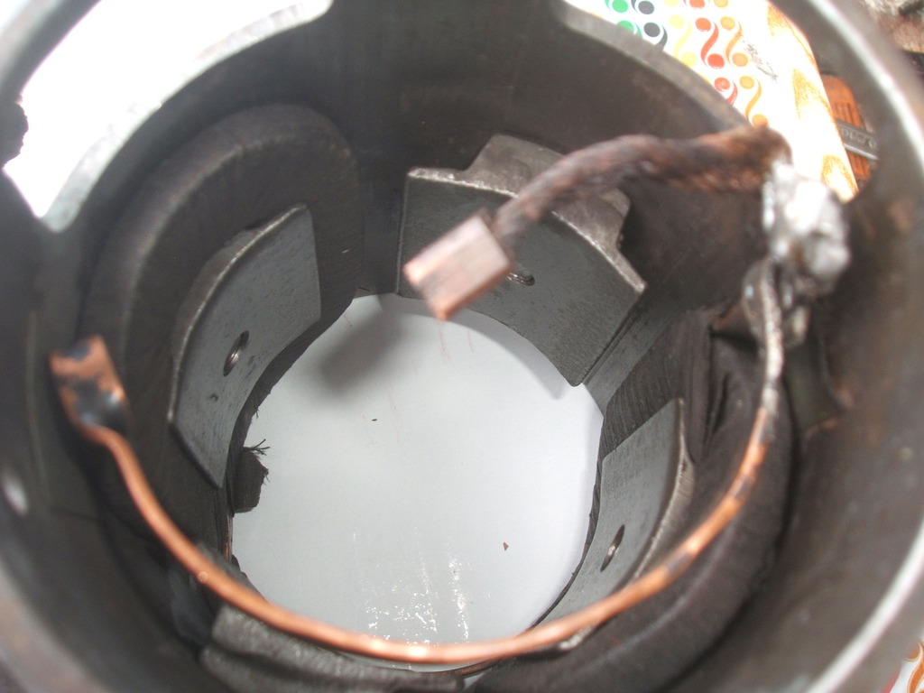 On voit un charbon moins usé que l'autre, je pense qu'il a été changé? car pour l'autre le charbon apparemment le petit écrou est soudé à "la barrette en cuivre" donc plus difficile de le changer si je ne me trompe pas ça sent pas mal le bricolage, le ressort d'appui du charbon est cassé, alors toujours la même question peut on trouver ces pieces et est que le charbon qui est soudé c'est d'origine.