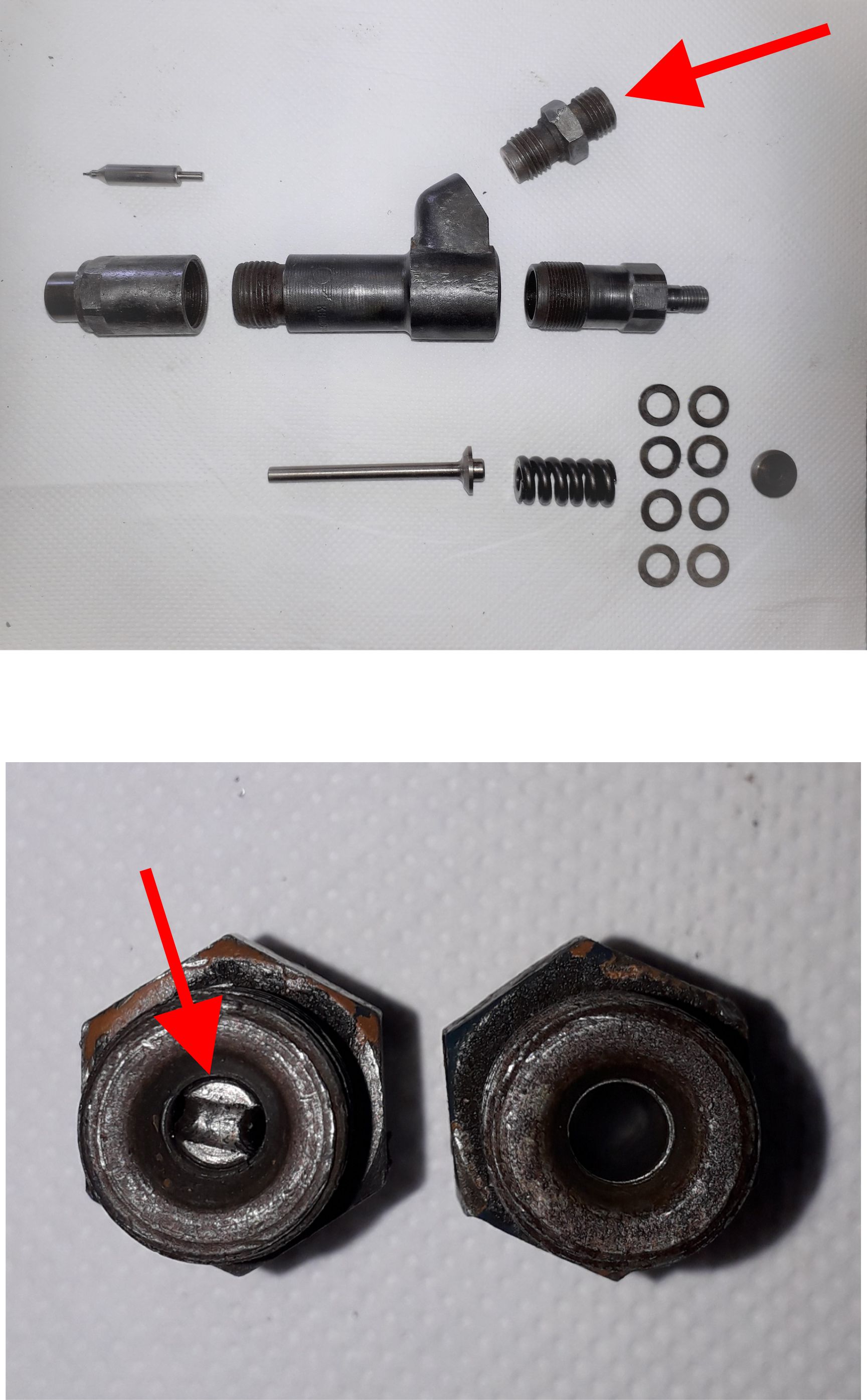 suite au démontage des injecteurs, il semble qu' il manque un axe dans l'une des pièces. (photo)