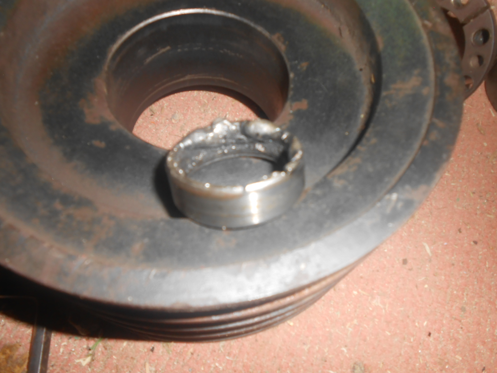 Poulie sans la bague (AqMP (Appareil qui Marche pas)) : La bague soudée (AqMP) : Les deux (AqMP) : La bague soudée (AR (Appareil Réparé)) (On voit la différence non de qualité de photo ?) Par contre, concernant, la qualité de ma soudure