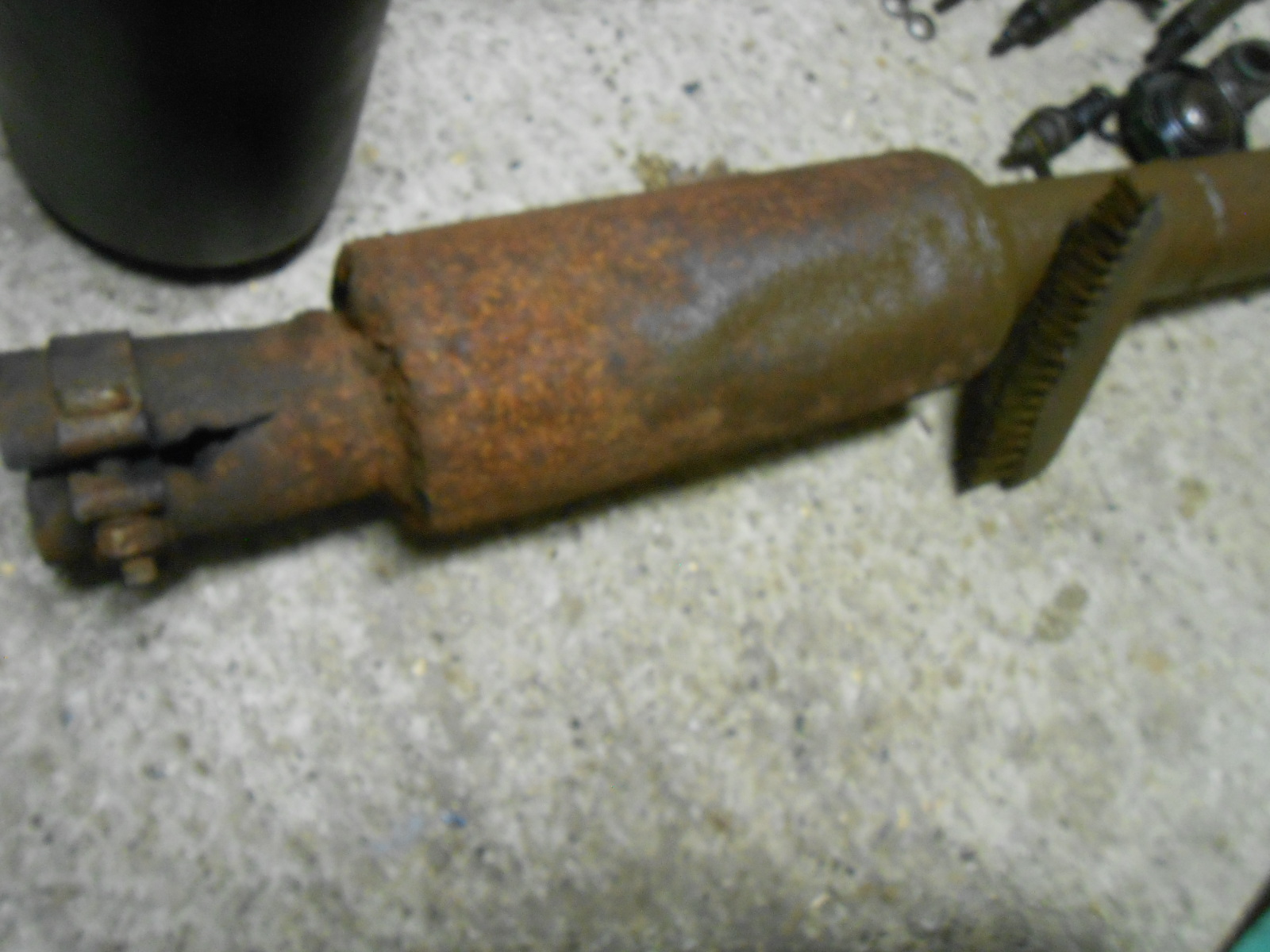 - Puis le pot d'échappement, salement rouillé, que je commence à nettoyer/dérouiller, et que je vais repeindre, surtout pour pas qu'il s'abîme trop et tombe en miette !