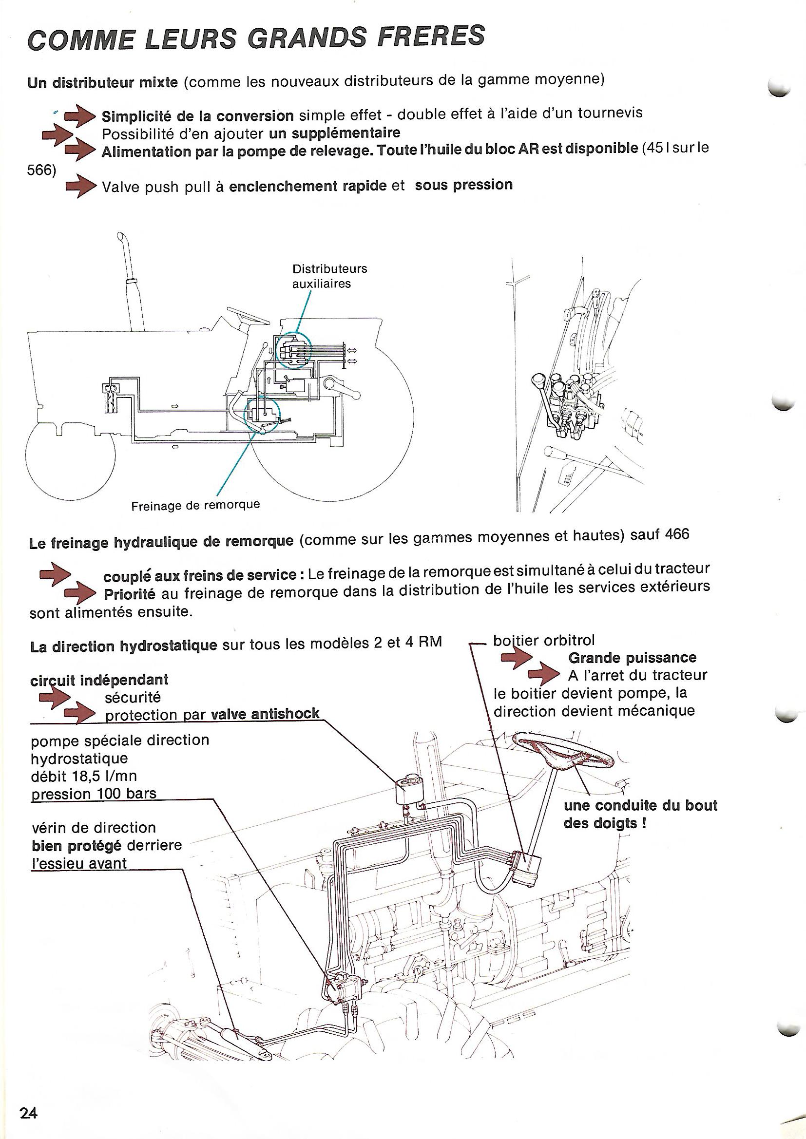 - J'ai débranché le tuyau qui venant de la pompe arrive sur le distributeur sous les pied, lequel possède le poussoir lié à la pédale de freinage pour actionner le frein remorque. J'ai constaté à la sortie de celui ci un débit plus important que après les distributeurs auxiliaire à la sortie desquels il n'y avait presque rien. Le fait de sortir le vis troué du raccord aurait il débloqué quelque chose !!?
