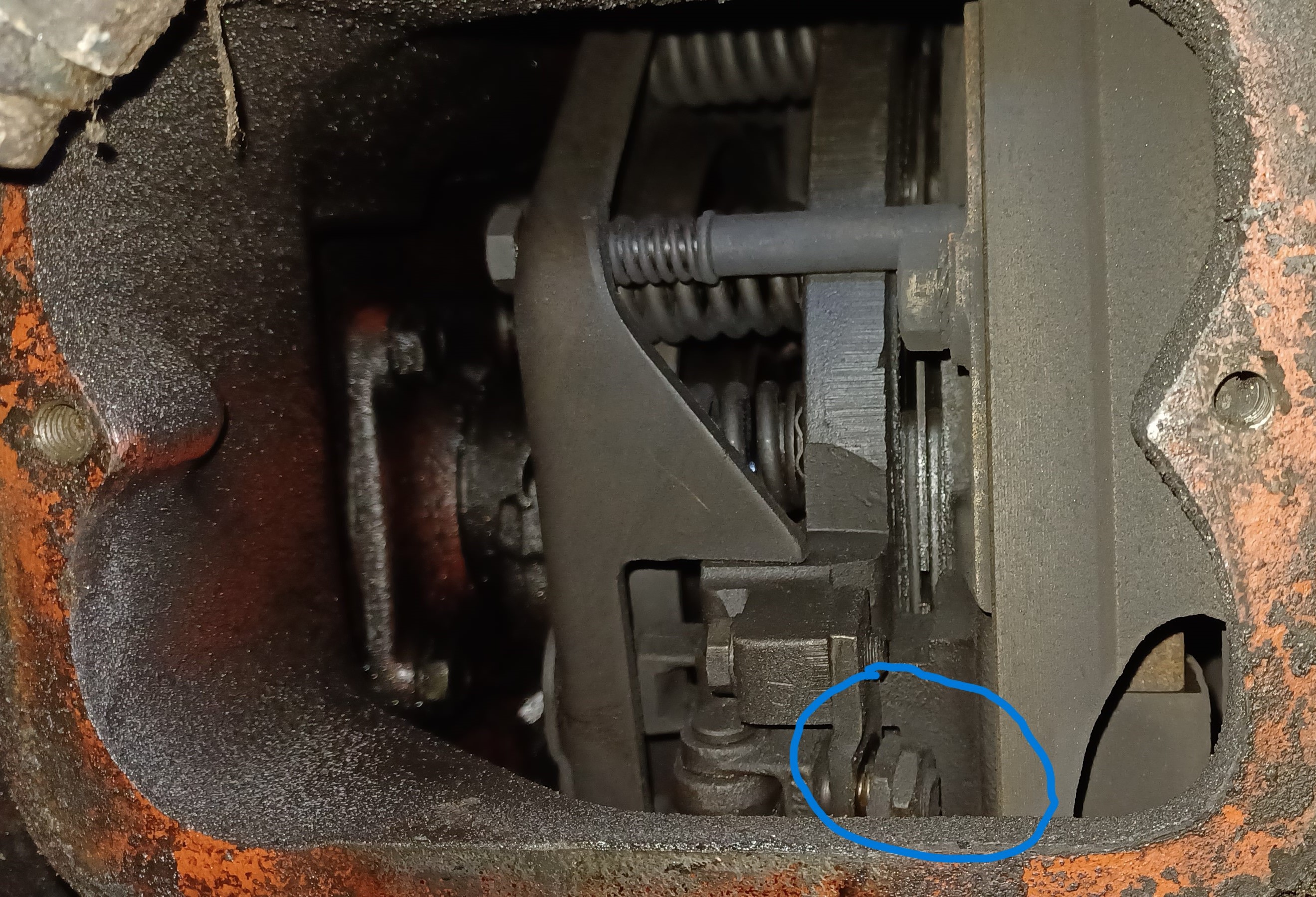 Ca y est j ai apercu la trappe d embrayage, mais pour l instant planquée derrière le bati de la fourche, dont les axes sont grippés. :/
