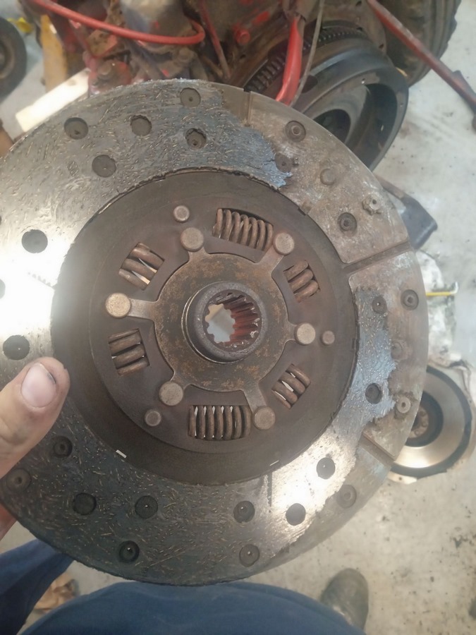 On a donc changé l'embrayage complet par un neuf ( on trouvait les disques ou les garnitures mais pas la rondelle ressort ).