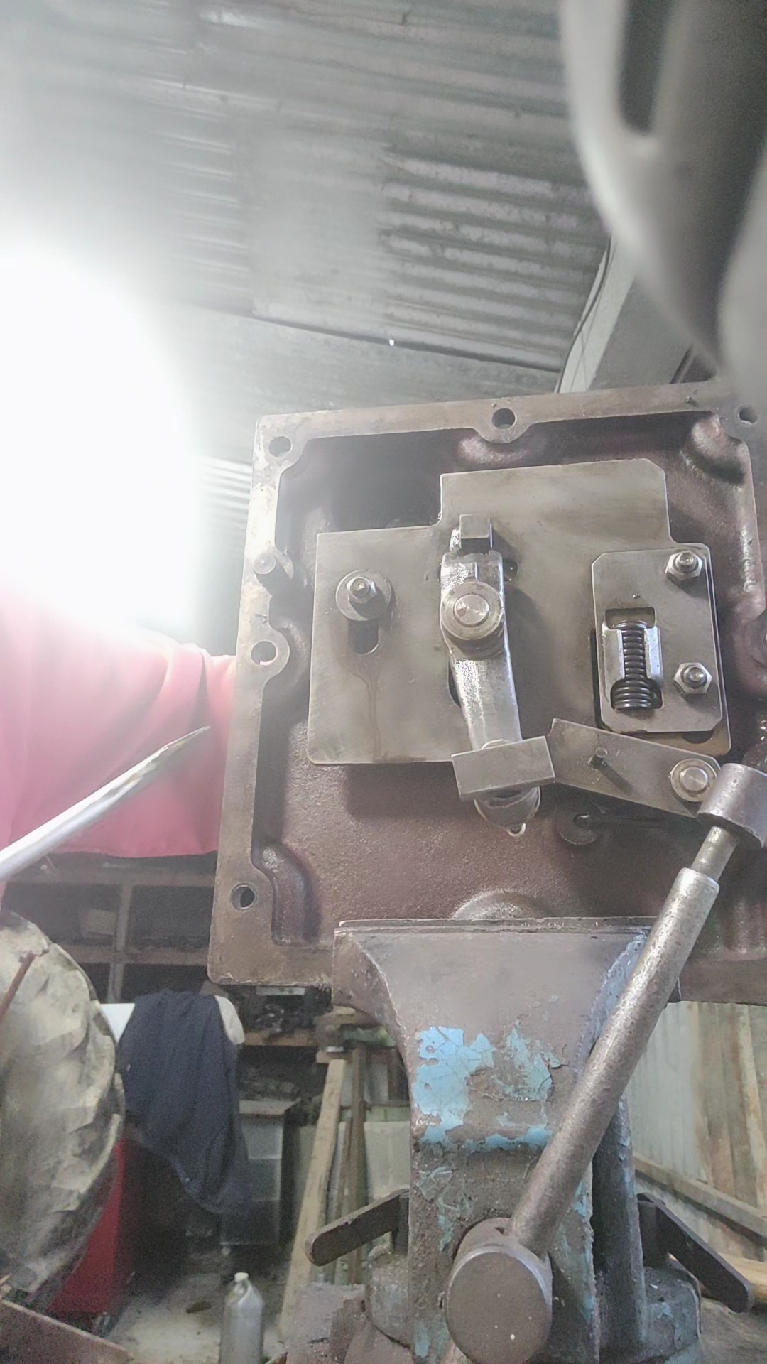 Non Thierry, il ne parle du trou oblong mais du levier que je viens de mettre avec le ressort entouré de rouge( juste avant les leviers de vitesse).Donc il a meulé le bord de là où il se verrouille