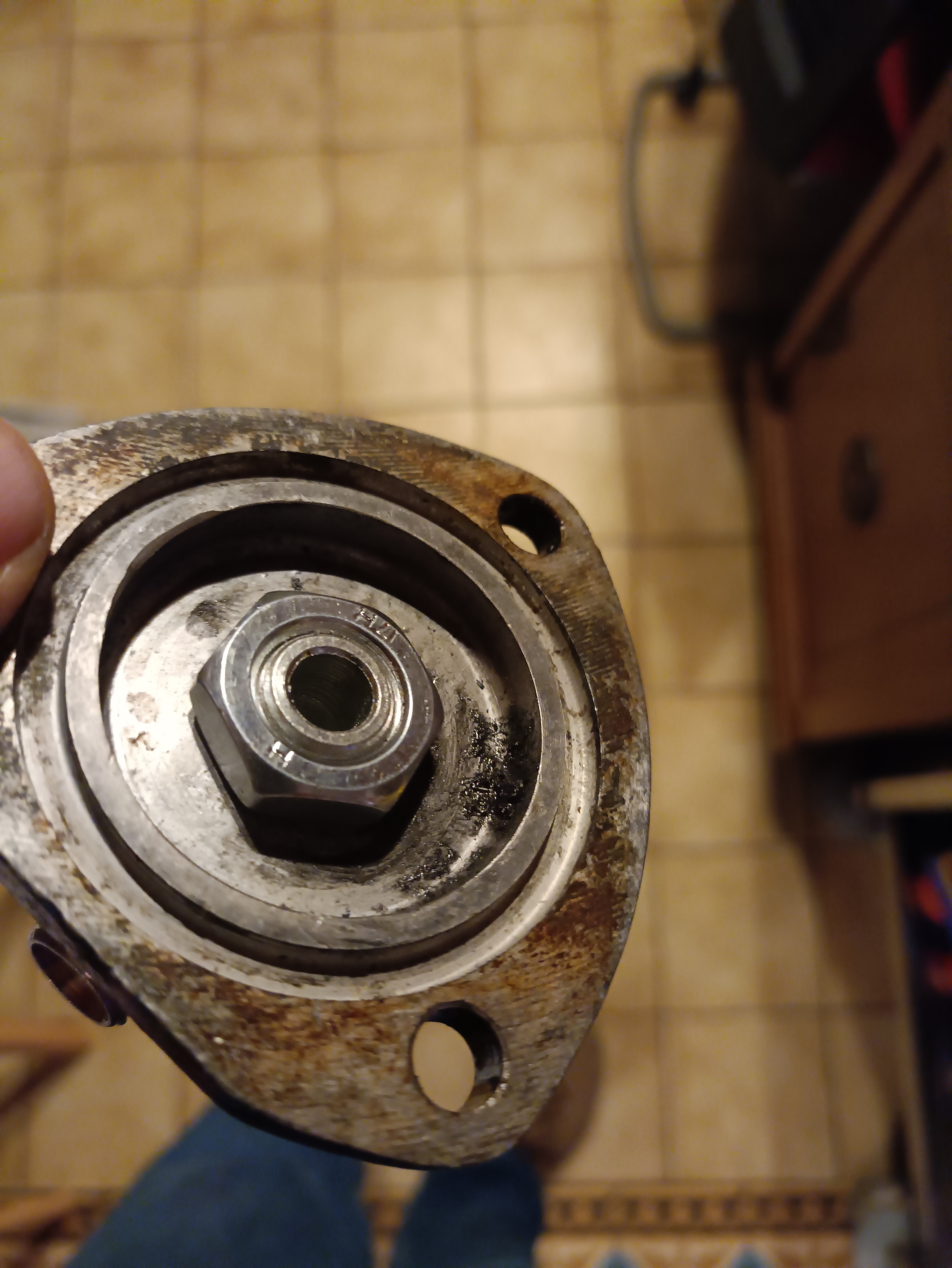 On a bien tous mis dans l'ordre et la rondelle est présente au niveau de la pompe hydraulique